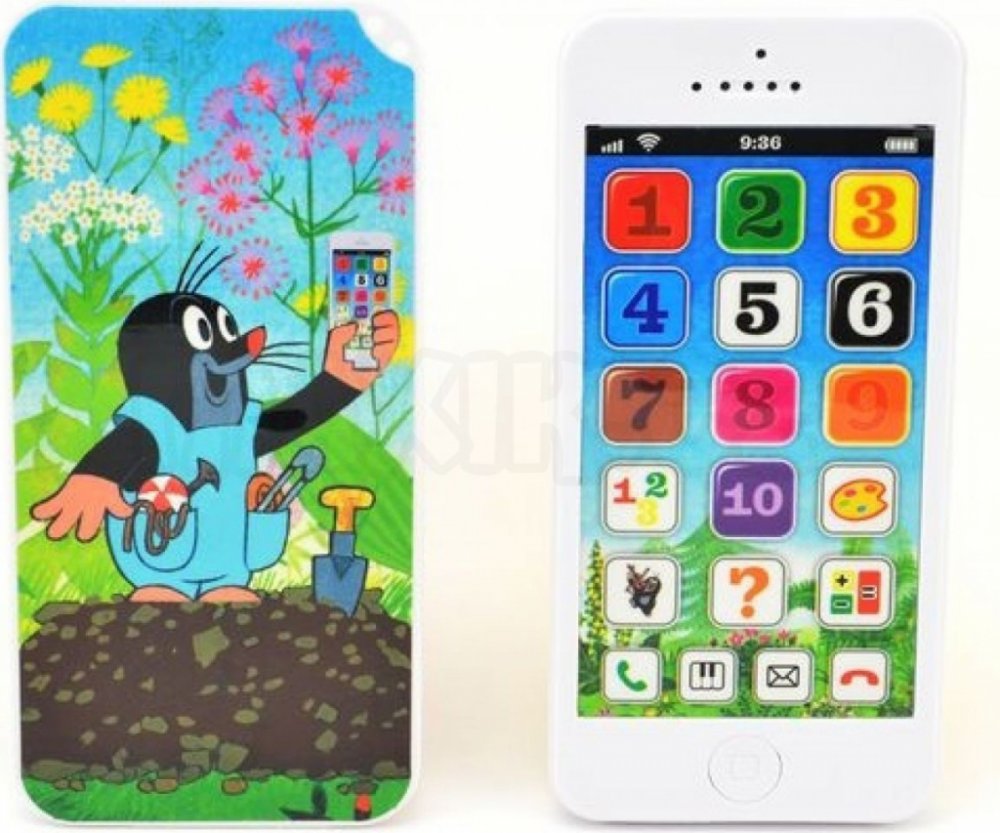 Krtkův naučný mobilní telefon s krytem. Krtkův mobilní telefon učí Vaše děti čísla a barvy. Rozvíjí slovní zásobu, představivost a logické myšlení. Zdokonaluje jemnou dětskou motoriku, rozvíjí zrak a sluch aktivním zapojením do hry.