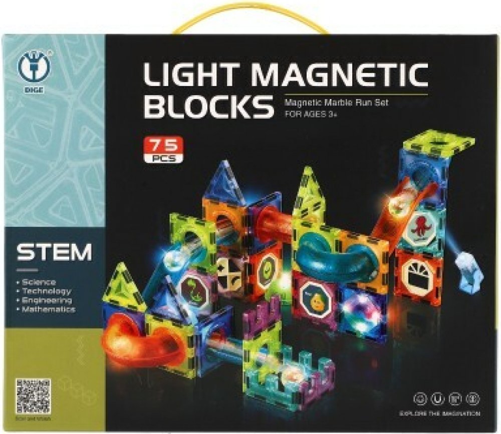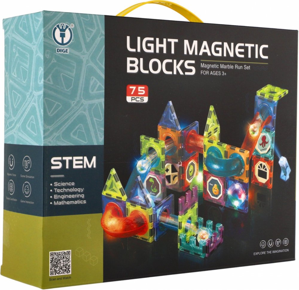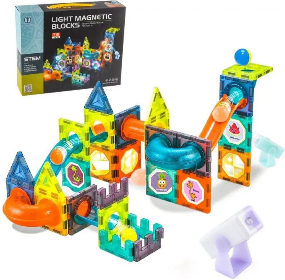 Sestavte si z magnetických dílků barevnou kuličkovou dráhu se světelnými efekty. Stavebnice rozvíjí jemnou motoriku a trénuje soustředění a zručnost. Tato sada obsahuje 75 ks + 4 kuliček. Doplňky jsou na baterie, které jsou součástí balení a jsou nevyměnitelné.