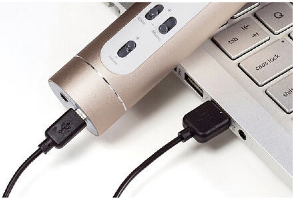 Obsah balení: karaoke mikrofon, nabíjecí kabel USB do Micro USB, audiokabel, návod k obsluze. Barva: zlatá.