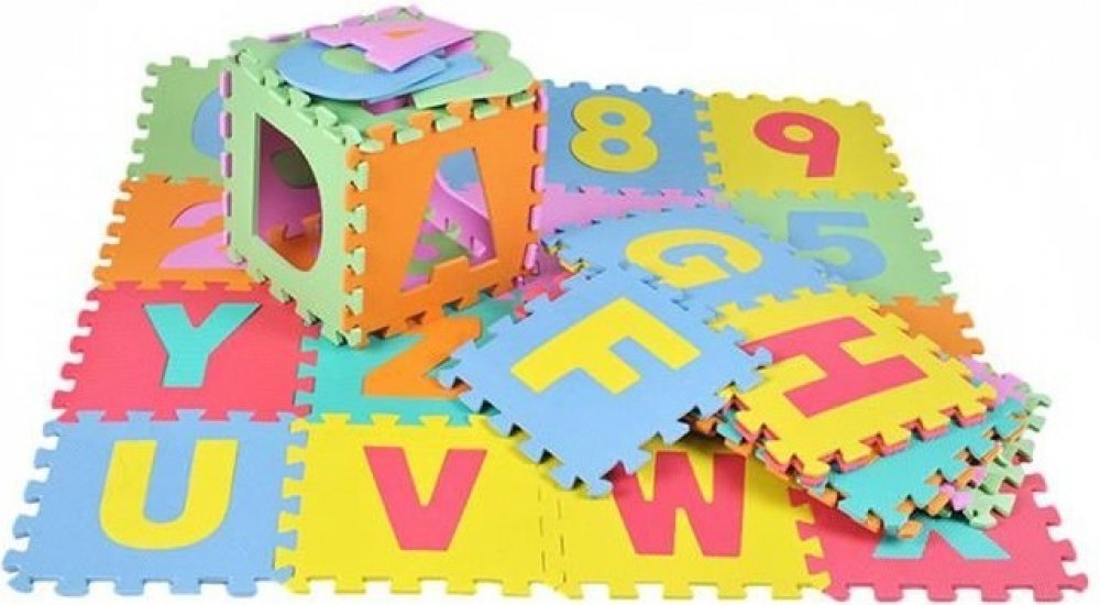 12m+ Podlahové pěnové puzzle. Puzzle lze využít i jako pěnový koberec. Jednotlivé dílky jsou vyrobeny v různých barevných variantách s vyjímatelným středem. Puzzle se skládá z 52 částí. Lze jej snadno sestavit. Pomáhá rozvíjet motorické schopnosti, kreativitu a koordinaci oko-ruka dítěte. Děti se naučí rozpoznávat písmena. Puzzle jsou vyrobeny z bezpečných materiálů a splňují všechny příslušné nor...
