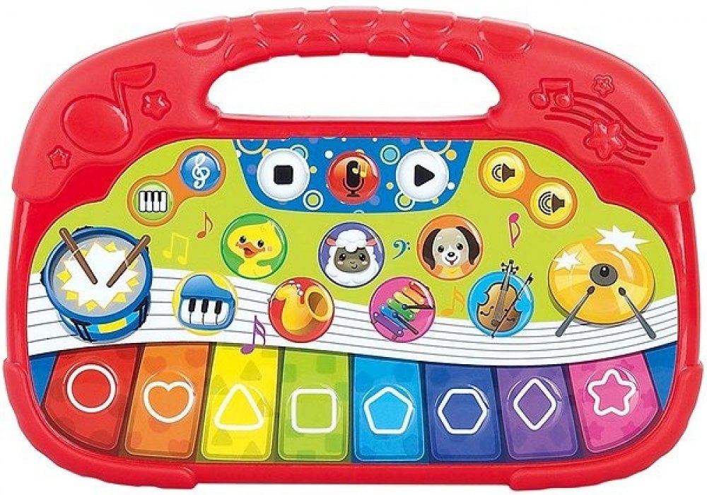 Klíčové vlastnosti pianka pro nejmenší Teddies Zvířátka, 25 cmInteraktivní pianko je určené pro nejmenší děti od 12 měsícůObsahuje zvuky zvířátek, hudebních nástrojů, 8 klavírních not, 10 různých písní Nabízí funkci nahráváníPianko je na baterie 2× AAA, které jsou součástí hračkyRozměry pianka činí 25 cm Rozměry:28 × 20 × 4 cm