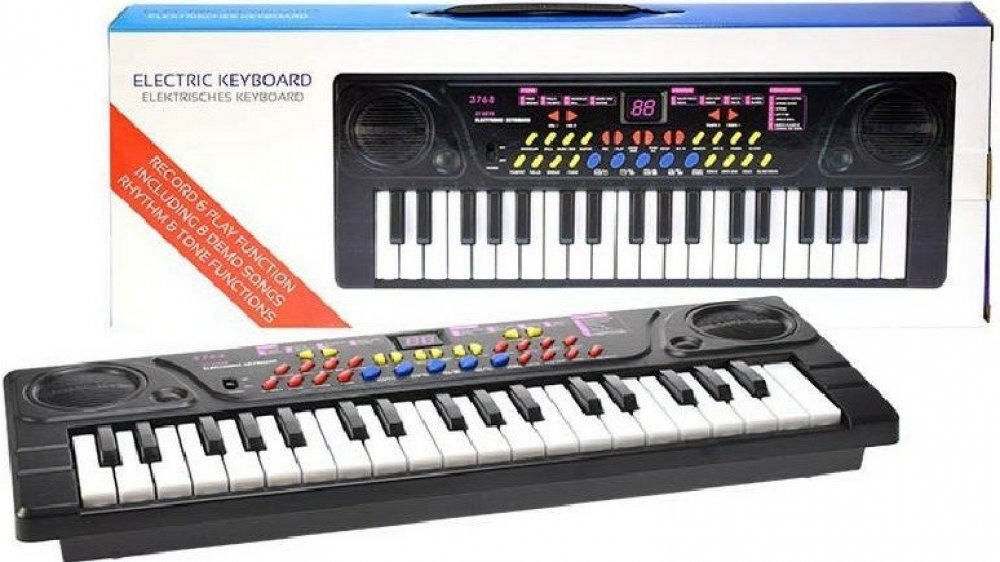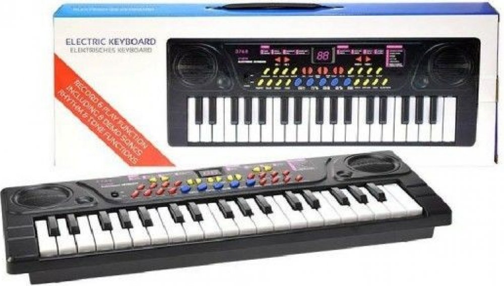 Plastové elektronické klávesy pro děti. Na pianu lze kromě klasických tónů také navolit různé podkresové melodie a měnit hudební nástroje. Součástí je také mikrofon a konektor pro připojení USB. Napájení na baterie nebo pomocí adaptéru do zásuvky. Baleno v krabici. Každé dítě miluje zvuky, a tato kytara mu umožní se se světem hudby seznámit. Hudební nástroje jsou hračky, které pomáhají rozvíjet hudební sluch a cit vašeho dítěte. Veďte děti k hudbě už odmalička! Rozměry balení (š v h): 47 x 17 x 5,5cm Rozměry dětské hračky (d š v): 42,5 x 16,5 x 5,5cm Materiál: plast Baterie: 4x AA 1,5V (nejsou součástí) Obsah balení: piano, mikrofon, USB kabel Vhodné baterie můžete k výrobku dokoupit na našem e-shopu. Cena je uvedena za 1 balení - sadu hračky Hračka je vhodná pro děti od 8 let