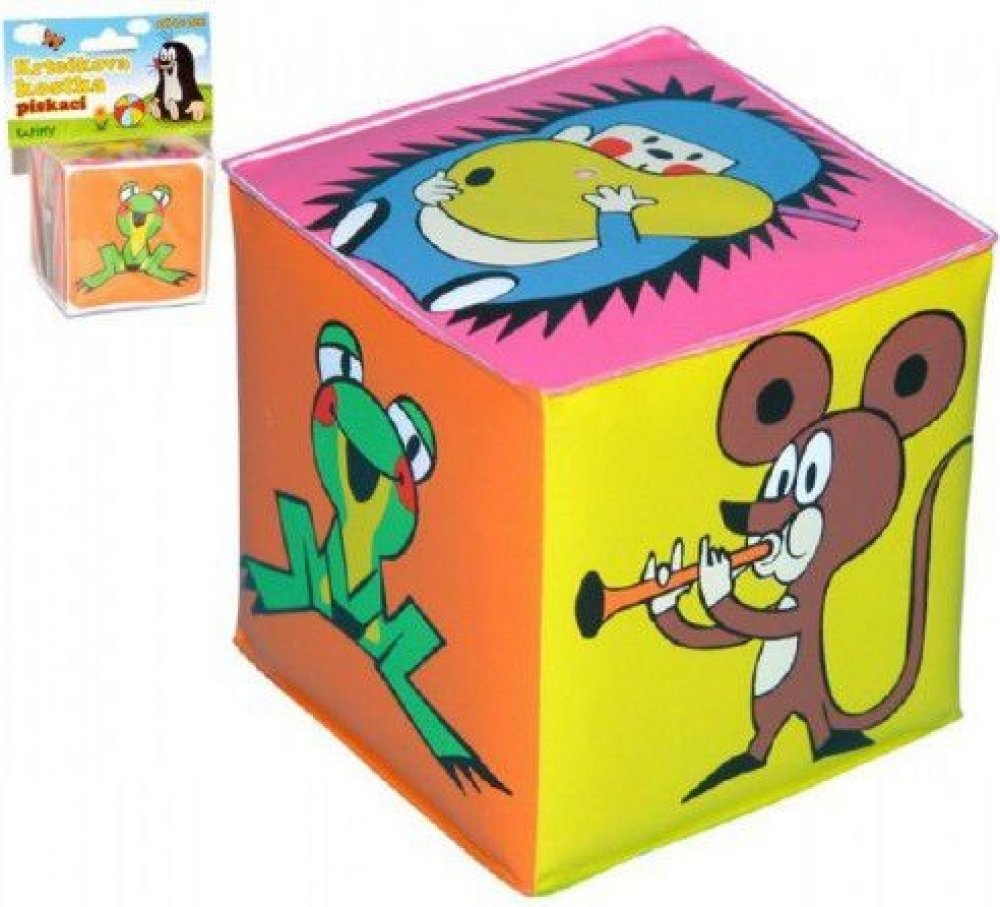 Pískací kostka z bezpečného materiálu pro miminka z kolekce s oblíbenými postavičkami Krtečka a jeho kamarádů přinese dětem velkou zábavu. Každá stěna kostky je jinak barevná a je na ní zobrazen buď Krteček nebo jeho kamarádi. Kostka vydává pískací zvuky.