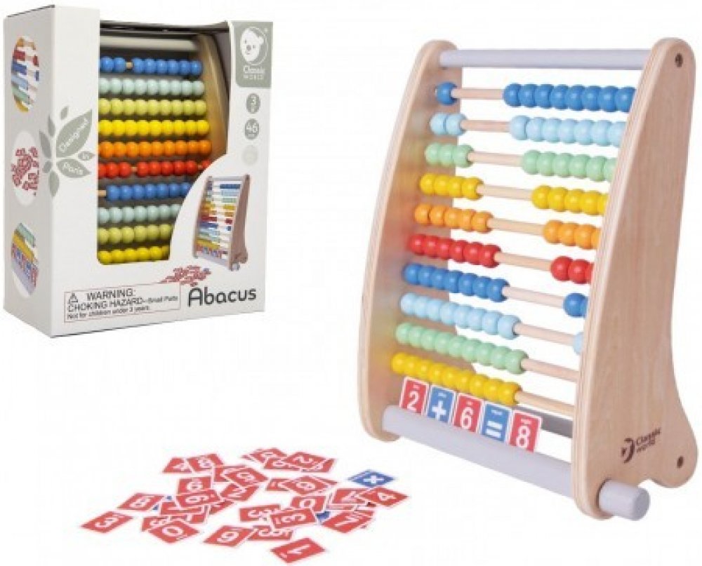 Klasické dřevěné počítadlo v přírodním provedení s barevnými kuličkami. Počítadlo podporuje logické myšlení a pomáhá při prvních početních úkolech. S tímto počítadlem se děti mohou naučit různé schopnosti v různém věku. Mohou posouvat korálky a určovat barvy. Hračka pomáhá provádět různé činnosti a zároveň rozvíjí motorické schopnosti při pohybu pohyblivých prvků. Počítadlo je vhodné pro individuální výuku , ale najde uplatnění i v mateřských a základních školách. Součástí jsou karty s čísly a matematickými operacemi (včetně anglických popisů) Parametry: Rozměry: 23x11,4x28 cm Rozměry balení: 23,5x12x29 cm Věk: 3+ Počet částí: 46 Materiál: dřevo Baleno v barevné kartonové krabici Charakteristiky: Jemné pastelové barvy Úžasný moderní design Vyrobeno z přírodního dřeva bez ostrých hran K malování byly použity přírodní barvy Precizní zpracování Hračka rozvíjí: schopnost řešit matematické operace schopnost logického myšlení manuální dovednosti učení se číslům jemnou motoriku zvědavost Hračky Classic World představují dětem novou dimenzi fantastické zábavy! Classic World jsou dřevěné ekologické hračky, jejichž účelem je nejen poskytnout zábavu, ale také rozvíjet dětskou tvořivost, rozvíjet citové vnímání a učit je navazovat přátelství. Ekologické hračky jsou určeny nejmenším dětem a jsou vyrobeny z přírodních, biologicky odbouratelných a hypoalergenních materiálů, takže jsou 100% bezpečné a neškodné nejen pro životní prostředí, ale i pro vaše dítě. Video: