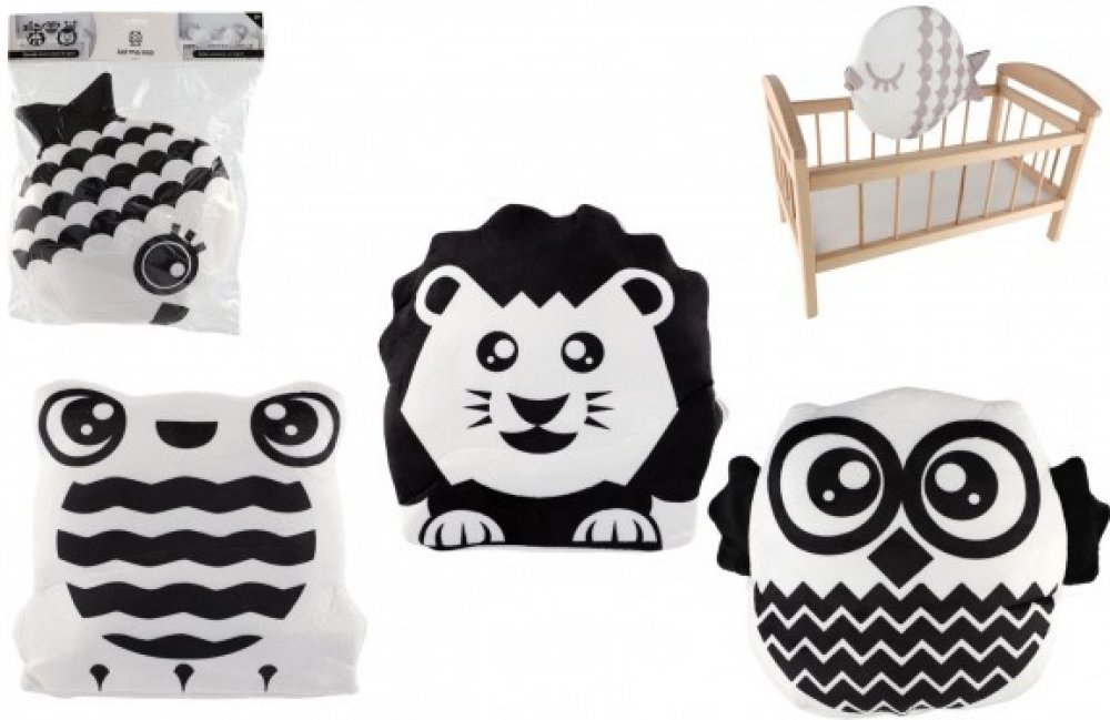 Krásný plyšový dekorativní polštář pro naše nejmenší. Barva je z jedné strany černobílá a z druhé šedobílá. Stimuluje tak zrak a vnímání nejmenších a ještě ozdobí postýlku!