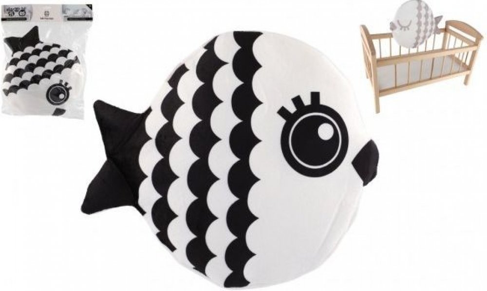 Teddies Polštář ryba plyšový 35x30cm černobílý v sáčku