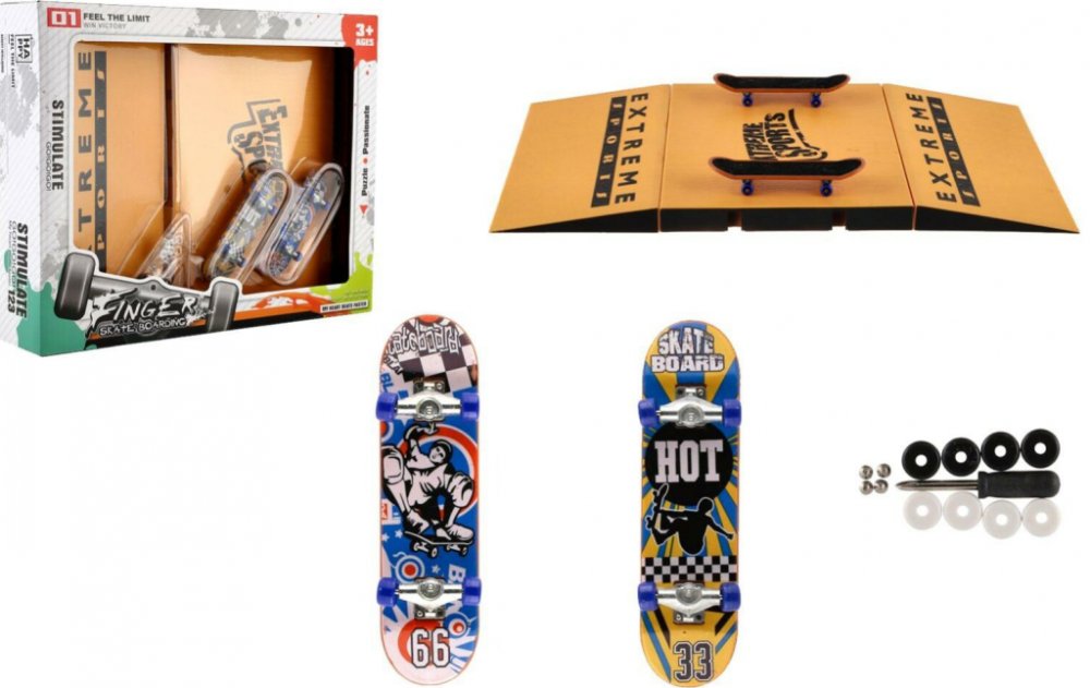 Teddies rampa Skateboard prstový šroubovací 2ks s rampou s doplňky