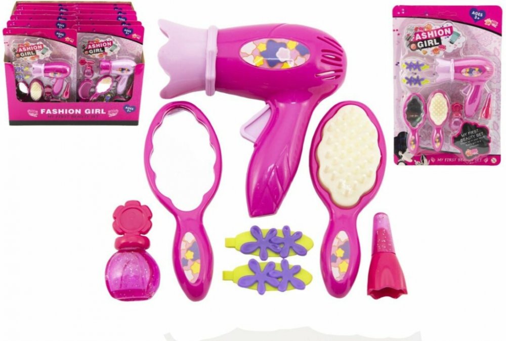 Sada je vyrobena z kvalitního plastu. Sada obsahuje 7ks doplňků včetně fénu. Balení může obsahovat trošku jiný design nebo barvu produktů. Druh sady dle akutální dostupnosti od dodavatele, nelze vybírat. Věk: od 3 let Materiál: plast Rozměr: balení 28 x 18 x 4 cm