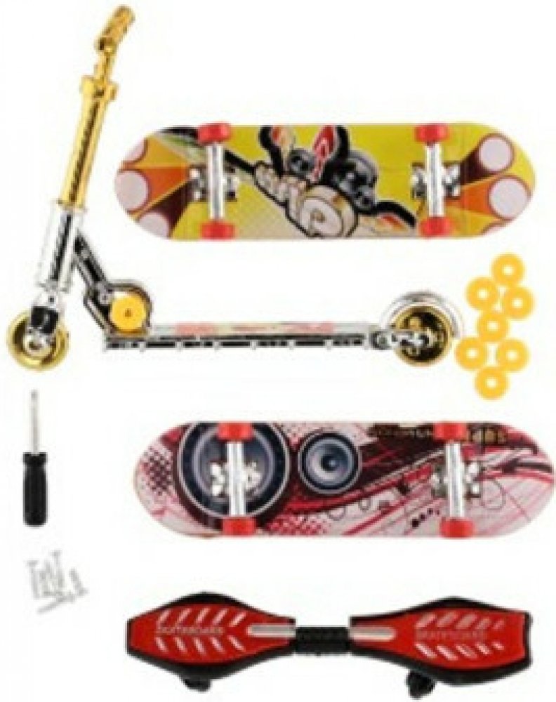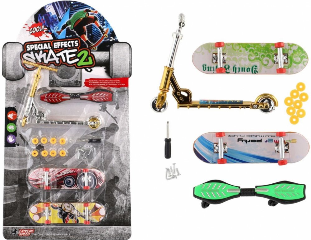 Provádějte a naučte se nové triky na mini skateboardu (2ks), waveboardu, bruslích a koloběžce. Skateboardy jsou šroubovací s potřebnými doplňky. Vyberte si svoji variantu a zažijte nekonečnou zábavu. Rozmě balení: 16 x 30 cm Vhodné od 3 let Sada skateboard šroub, finger scooter, waveboard plast s příslušenstvím na kartě 16x30cm Předvádějte a učte se nové triky na mini skateboardu (2 ks), waveboardu, bruslích a koloběžce. Skateboardy jsou šroubovací s potřebným příslušenstvím. Rozměr balení: 16 x 30 cm Vhodné pro děti od 3 let HRAČKA SE DODÁVÁ V NĚKOLIKA VARIANTÁCH, VARIANTY DODÁVÁME POUZE DLE AKTUÁLNÍCH SKLADOVÝCH ZÁSOB. VARIANTU NELZE VYBRAT, PROTOŽE NEMŮŽEME VYBRAT, CO NÁM DODAVATEL ZASLAL. Děkujeme za pochopení. Obrázky jsou ilustrační.