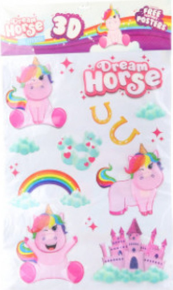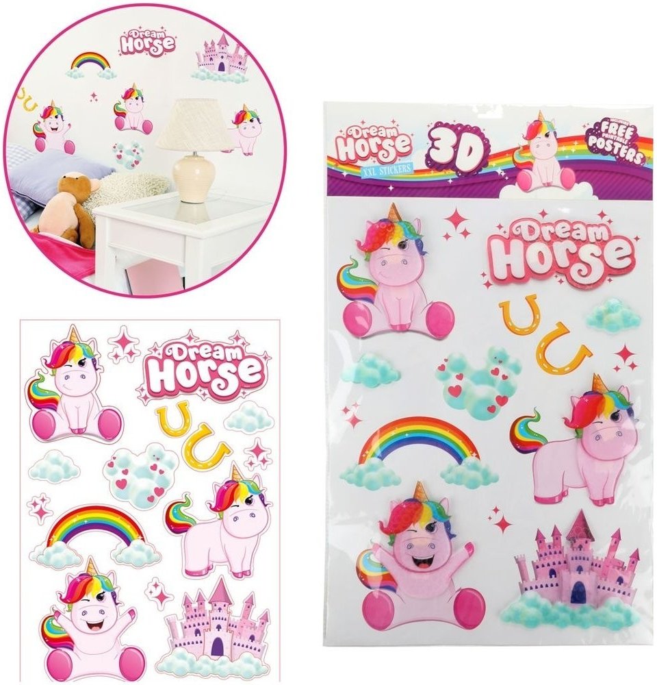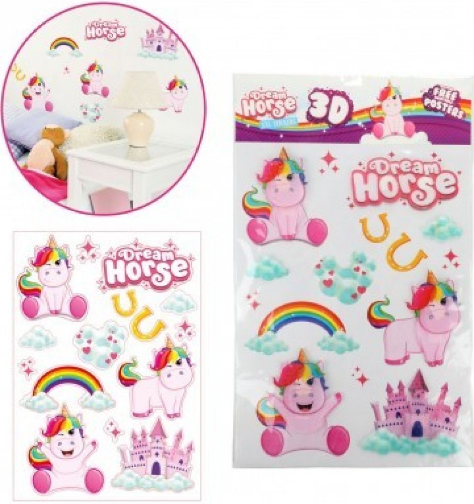Líbí se ti jednorožci? Super, protože díky 3D samolepkách na zeď je můžeš mít pořád u sebe v pokojíčku! 6 samolepek s 3D efektem a 8 obyčejných udělá z tvého pokojíku království! Nalep si vše podle své fantazie!