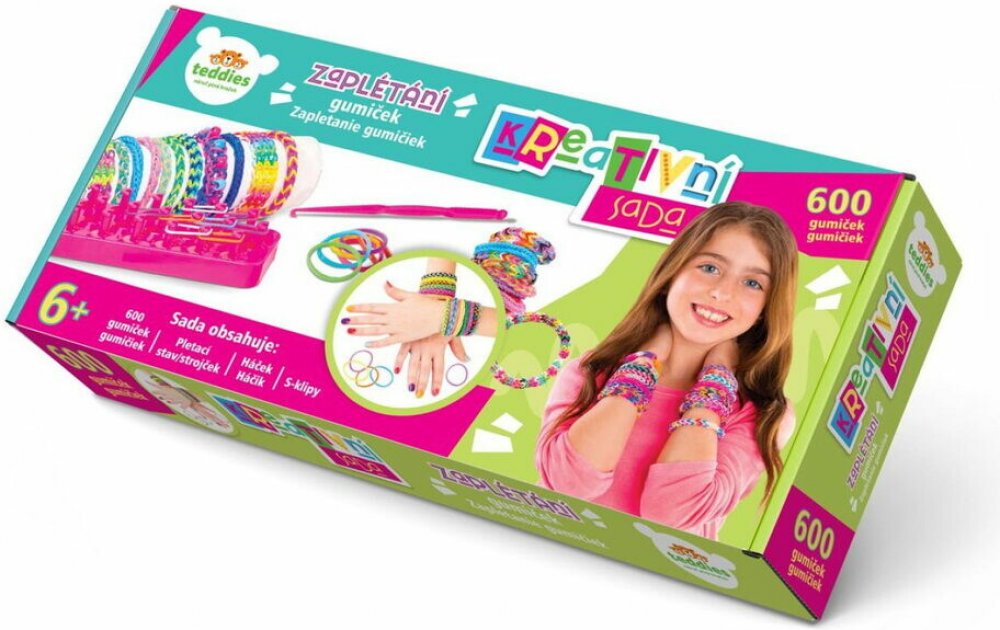 Teddies udělej si svůj náramek gumičky 600ks náčiní pletací stav na náramky v krabičce 27x13x4cm