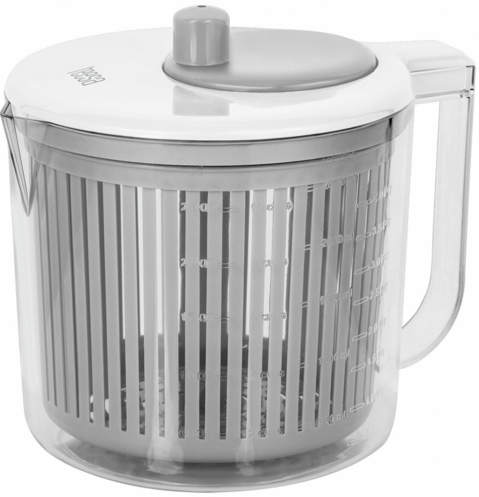 Po vyjmutí sušicí části na salát můžete nádobu použít i k přípravě jiných pokrmů. Zejména proto, že její stěny mají litrovou stupnici, takže odpadá potřeba další nádoby na odměřování ingrediencí. Vnitřní část sušičky lze také použít jako cedník.
