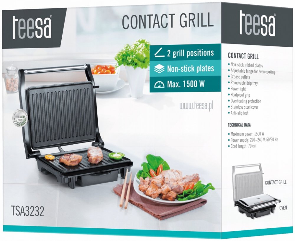 Teesa kontaktní teflonové 1500 W 2 1.7 kg černé/stříbrné 25.4 cm 17.8 cm 9 cm 29.5 cm 26 cm