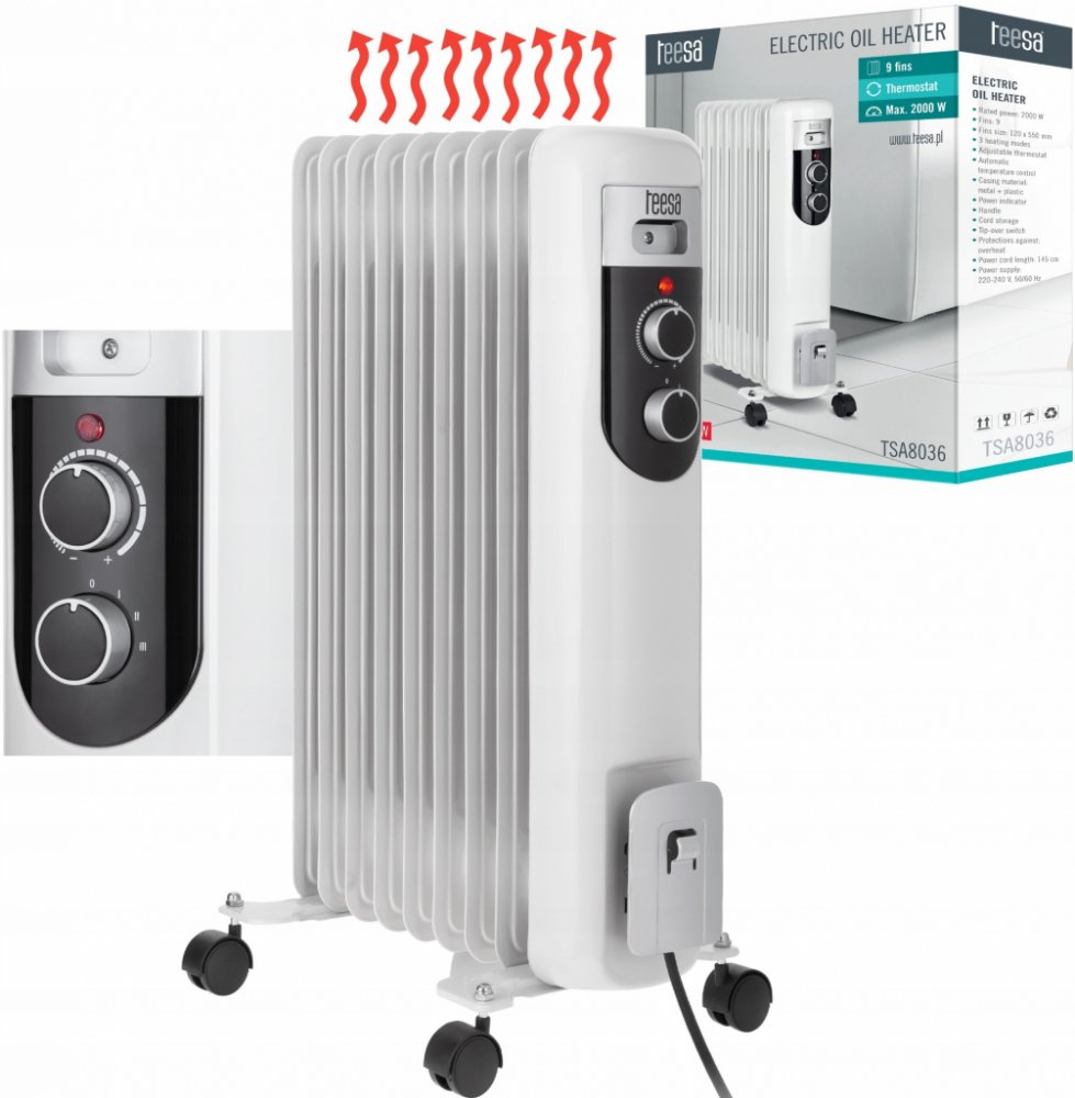 Olejový radiátor Teesa je nezávislou a přenosnou jednotkou, která se obejde bez připojení k topnému systému. Topný výkon činí 2 kW, a proto je vhodný pro vytápění středně velkých prostor, například ložnic nebo kuchyňských koutů. Konstrukce z oceli se rychle nahřeje, dobře předává teplo do prostoru a je vysoce odolná. Klíčové vlastnosti olejového radiátoru Teesa TSA8036 Olejový radiátor 2000 W - 9 ...