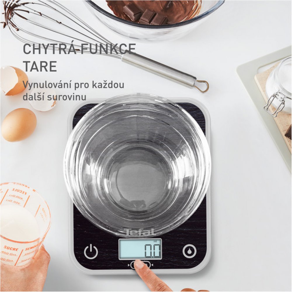Tefal BC50D2 Keukenweegschaal Zwart Kuchyňská váha - digitální, s hladkým povrchem, klasický design, váží do 5 kg s přesností 0,5 g, s možností volby mezi jednotkami gramů a liber, automatické vypnutí, s funkcí TARE, podsvícený displej, materiál sklo, rozměry 21,5 × 17,5 × 2,2 cm (V × Š × H), 2 baterie AAA, baterie jsou součástí dodávky Je to nepostradatelný pomocník v kuchyni pro každého, kdo chce při vaření a pečení pečlivě vážit. Tato kuchyňská váha s moderním plochým designem a digitální přesností nabízí spolehlivost a pohodlí v jednom. Váha Tefal BC50D2 se snadno používá, nezabere mnoho místa a zajistí, že každou ingredienci zvážíte s maximální možnou přesností.