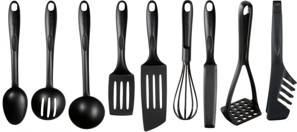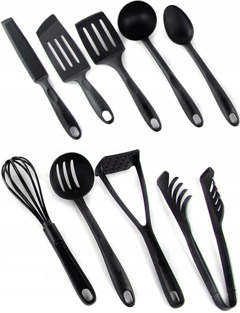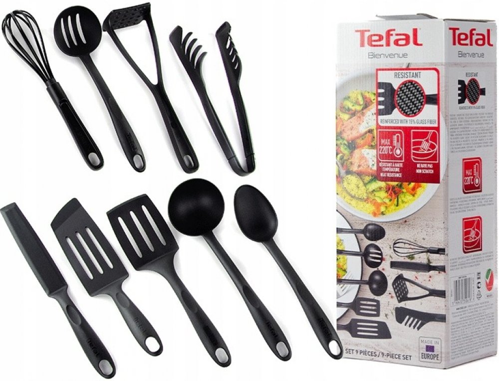 Sada kuchyňského náčiní Bienvenue TEFALSada 9 kusů kuchyňského náčiní je ideální pro všechny vaše každodenní potřeby při vaření. Díky materiálu z nylonu zesíleného skleněnými vlákny je odolná vůči teplu až do 220 °C a nepoškozuje nepřilnavé povrchy. Každý kus je vybaven otvorem na pověšení, což umožňuje snadné umístění v kuchyni. Navíc je toto náčiní vhodné do myčky. S touto sadou budete mít vždy ...