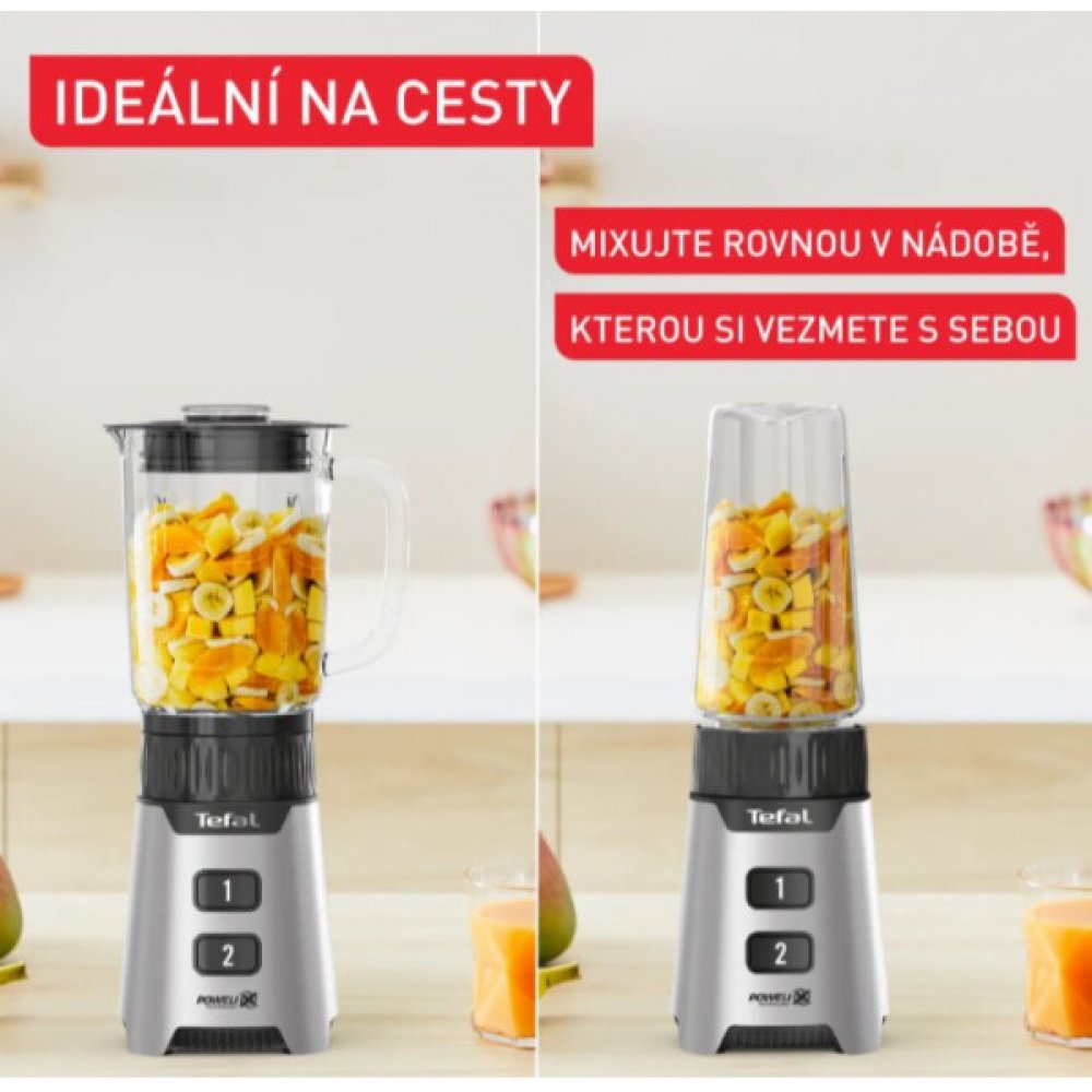 Minimix smoothie mixér TEFALSmoothie mixér s kompaktními rozměry, ale s vysokým výkonem. S jeho 400W motorem a inovativní technologií ostrých čepelí Powelix si snadno poradíte i s těmi nejtvrdšími surovinami. To znamená extra hladké výsledky bez kousků, a to mnohem rychleji. Tato technologie, vyvinutá odborníky značky Tefal, spojuje silný motor s nerezovými čepelemi, které vám umožní vytvořit perf...