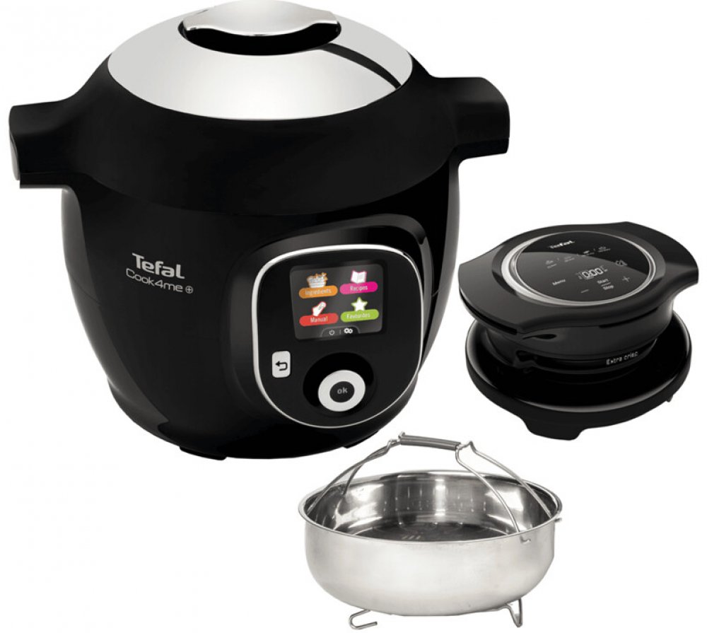 elektrického hrnce Úspora energie až 80 % s elektrický tlakovými hrnci Tefal!* Hrnec s Bluetooth připojením? Cože? Dámy a pánové, multifukční tlakový hrnec Tefal Cook4me+ CY855830 Connect black je skutečně supermoderní a hravě se připojí k vašemu telefonu prostřednictvím Bluetooth . Vy tak nejenže můžete ovládat hrnec na dálku, ale díky mobilní aplikaci My Tefal hlavně sledovat průběh vaření z vašeho chytrého zařízení (mobil či tablet). Navíc budete mít vždy po ruce přímo v telefonu všechny recepty - a tedy i nákupní seznam. Bezpečný, rychlý, multifunkční "Tlakáč" Tefal Cook4me+ Connect vyniká nejen funkcemi, designem a kvalitou provedení, ale také bezpečností. Pokud máte respekt z klasického tlakového hrnce, bude vám Cook4me+ skvělým parťákem, v němž snadno a rychle uvaříte božský vývar, guláš či luštěniny. Tento automatický šikula navíc spojuje hned tři hrnce v jednom . V jeho elegantním těle snadno připravíte lahodné pokrmy podle přednastavených receptů , kterých umí pěknou řádku - rovných 150! Sto dvacet z nich přitom připravíte za 15 minut. Hrnec vám tak velmi ušetří čas strávený v kuchyni a postará se o to, že nikdy nic už nepřipálíte . Vypne se přesně ve chvíli, kdy jsou suroviny hotové - a navíc vám dá signalizací vědět, kdy je do něj třeba vložit další ingredience potřebné pro zvolený pokrm. Cook4me+ je tak skvělým tipem nejen pro zkušené kuchařské matadory, ale také pro začátečníky , kteří ocení velmi jednoduché ovládání a automatický dozor nad průběhem vaření. Usnadněte si domácí vaření elektrickým hrncem Tefal! Objevte plný potenciál vašeho hrnce Cook4me+ Touch s naší aplikací My Tefal Chcete naplno využít všechny inovativní funkce našeho produktu? Stáhněte si naši mobilní aplikaci My Tefal a otevřete dveře novému světu možností. Mobilní aplikace My Tefal, dostupná pro zařízení se systémem Android a Apple iOS, je plně vybavena funkcemi, které usnadňují vyhledávání receptů, plánování jídla, tvorbu nákupních seznamů a další. A co je nejlepší, aplikaci můžete stáhnout a používat zdarma! Vneste inspiraci do vaší kuchyně s těmito recepty pro Cook4Me+! Ukažte světu, co všechno dokážete s hrncem Cook4Me+! Nejen tyto pokrmy, ale i mnohem více zvládnete uvařit ve vašem hrnci Cook4Me+ Touch. Připravte se na neodolatelné vůně a chutě, které si můžete lehce vytvořit přímo ve vaší kuchyni. Tip: Na blogu Tefal najdete desítky receptů s využitím hrnce Tefal Cook4me+. Na vzniku receptů z lokálních surovin a typicky české kuchyně se podílel kuchař Ondřej Slanina, kterého znáte například z pořadu Kluci v akci. Nejdůležitější parametry: Hrnec, pánev, rýžovar a parní hrnec v jednom s Bluetooth připojením Rychlé vaření bez nutnosti kontroly a připalování Objem 6 l 6 režimů vaření 150 předprogramovaných receptů Inteligentní ovládací panel s LCD displejem Funkce Keep warm (udržuje pokrmy teplé) Nepřilnavá keramická 3vrstvá vnitřní nádoba (odnímatelná s tloušťkou 1,8 mm) Mobilní aplikace My Tefal pro sledování průběhu vaření z vašeho chytrého zařízení a aktualizaci receptů Časovač a odložený start Bezpečnostní pojistky proti přetlaku Součástí i parní koš Příslušenství vhodné do myčky horkovzdušné fritézy S fritézou bez oleje Cook4me Extra Crisp Lid EY150830 dodáte rychlému a zdravému vaření v hrnci Cook4me+ na křupavosti! Všestranné příslušenství k vašemu multifunkčnímu hrnci vám umožní přímo v hrnci opékat, grilovat, horkovzdušně smažit a péct. Co si v Cook4me+ upéct kuře či koláč, usmažit hranolky, ogrilovat kuřecí křidýlka či opéct rybí filé? To všechno je teď možné a technologie Extra Crisp bude zárukou vždy křupavých dozlatova opečených výsledků. A to i bez kapky oleje! Stačí vložit a zacvaknout a příslušenství Extra Crisp Lid se postará o zbytek. Nejdůležitější parametry: Příslušenství pro multifunkční elektrické tlakové hrnce Tefal Cook4me+ CY851130 , Cook4me+ Connect CY855830 a Cook4me+ Touch CY851130 . Horkovzdušná fritéza pro přípravu pokrmů dokřupava bez tuku 4v1 vaření: umožňuje smažit, péct, opékat a grilovat Intuitivní digitální rozhraní se čtyřmi automatickými funkcemi Regulace teploty Praktický časovač s automatickým vypnutím Manuální režim, který vám umožní nastavit teplotu libovolně Součástí knížka s recepty
