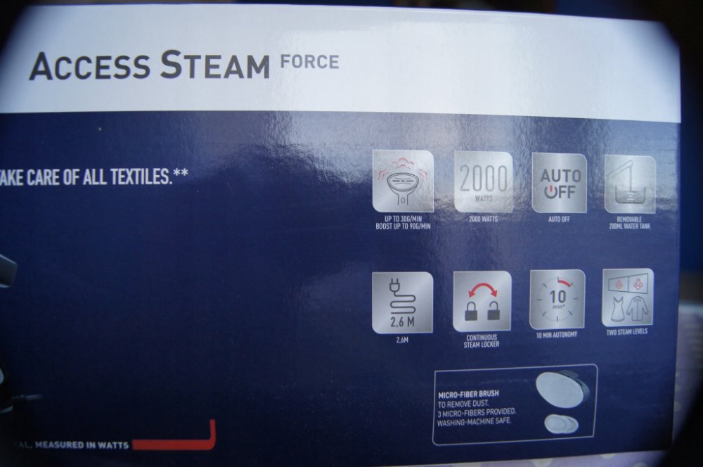 Napařovač oděvů pro všechny typy textilií. Vyhlazuje záhyby a dezinfikuje. Nástavec z mikrovlákna. Připraven k použití za 25 s. Kontinuální výstup páry 30 g/min. Parní ráz 90 g/min. Vyjímatelná nádržka na vodu 200 ml. Napájecí kabel 2,6 m. Funkce automatického vypnutí. Nastavení páry ve 2 úrovních.