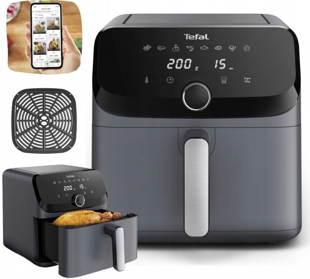 Horkovzdušná fritéza objem 7,5l, příprava jídla až pro 8 osob, 8 přednastavitelných programů, přesné nastavení teploty a času (80 °C-200 °C, až na 60 minut), šetří až 65% energie, o 37% rychlejší výsledek, časovač