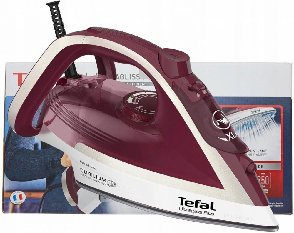Příkon: 2 800 W, trvalý výstup páry až 50 g /min, parní ráz až 260 g/min, žehlicí plocha Durilium Airglide, režim Eco, díky přesnému hrotu je žehlení pohodlnější díky přístupu k těžko dostupným oblastem, funkce vertikálního napařování, vyrobeno ve Franci