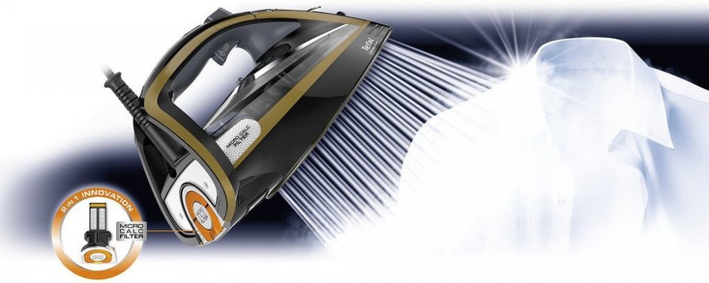 Zcela nový unikátní systém proti vodnímu kameni s inovativním filtrem mikročástic nabízí účinek 2 v 1: filtr zachycuje vodní kámen a k prádlu se dostane jen čistá pára.