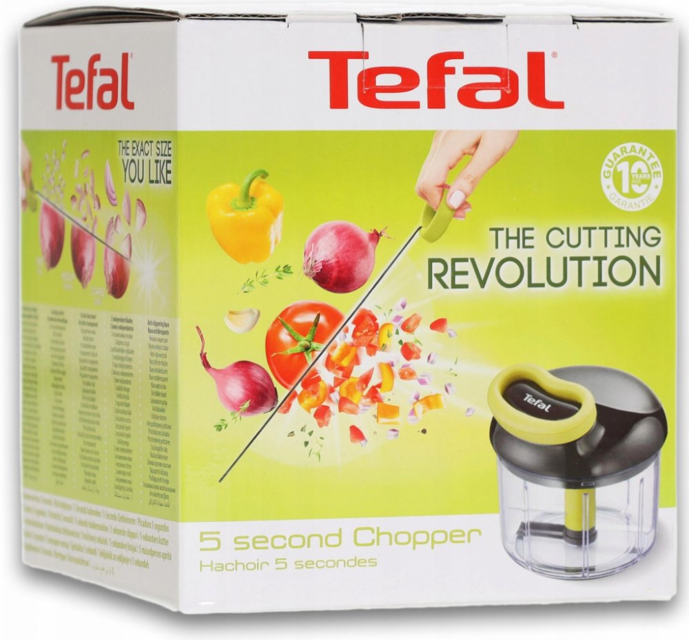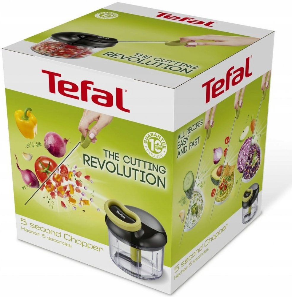 TEFAL sekáček 5 seccond chopper 900ml představuje přináší revoluci v krájení. Jde o nejjednodušší a nejrychlejší způsob, jak posekat potraviny. Sekáček je opatřený extrémně odolnými nerezovými noži, které zvládnou posekat všechny druhy potravin. Během pár sekund najemno poseká ovoce, zeleninu, bylinky i tvrdé ořechy. Je vybavený bezpečnostním systémem, který zaručí bezpečí při jeho provozu. Díky průhledné misce můžete sledovat průběh sekání a v případě, že chcete, aby potraviny byly nasekané více nahrubo, jednoduše přístroj vypnete. Pro ještě vyšší výkon je sekáček opatřený vodítkem nože. Ergonomicky tvarovaná rukojeť a protiskluzové nožičky obohacují velmi komfortní používání.