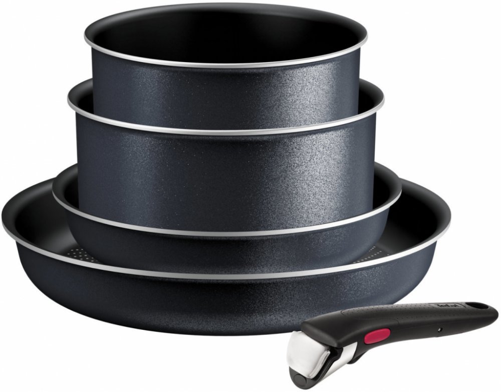 na vaření 5ks (rendlík 18 a 20 cm, pánev 22 a 28cm, odnímatelná rukojeť), lehká konstrukce, kompatibilní typ ohřevu: indukce, plyn, sklokeramika, elektřina, vnitřní nepřilnavý povrch Titanium, vnější nepřilnavý povrch, indikátor teploty Thermo-Signal, silné dno, odolný povrch, materiál hliník, vylévací okraj, vhodné do trouby, barva šedomodrá metalická, vyrobeno ve Francii (L7239523)