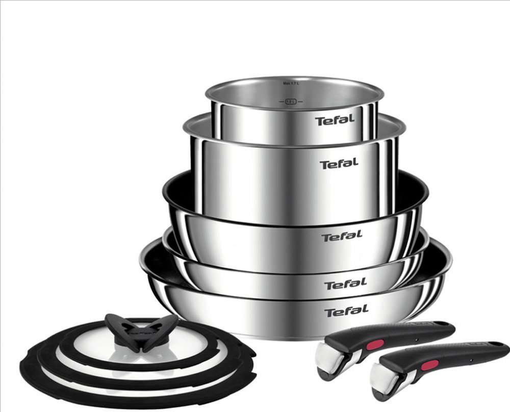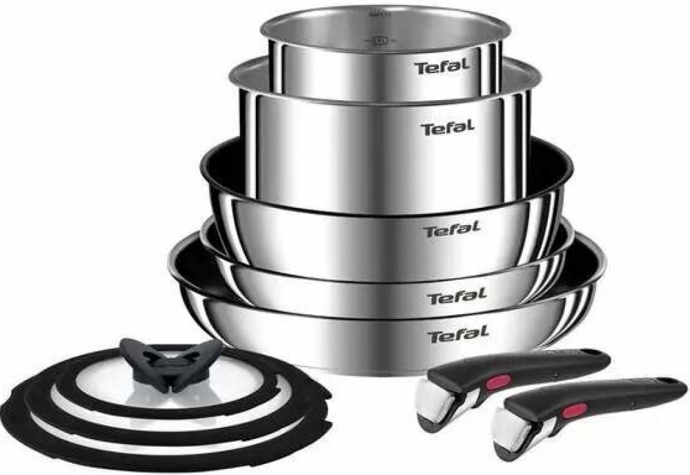 Sada hrnců a pánví • úsporný stohovatelný design • nerezová ocel • odnímatelná rukojeť • na všechny zdroje ohřevu • vnitřní nepřilnavý povrch Titanium 2X (u pánví) • indikátor teploty Thermo-Signal™ (u pánví) • pro použití v troubě (mimo rukojeti a poklic) • hrnce 16/20 cm, pánve 24/28 cm, hluboká pánev 24 cm