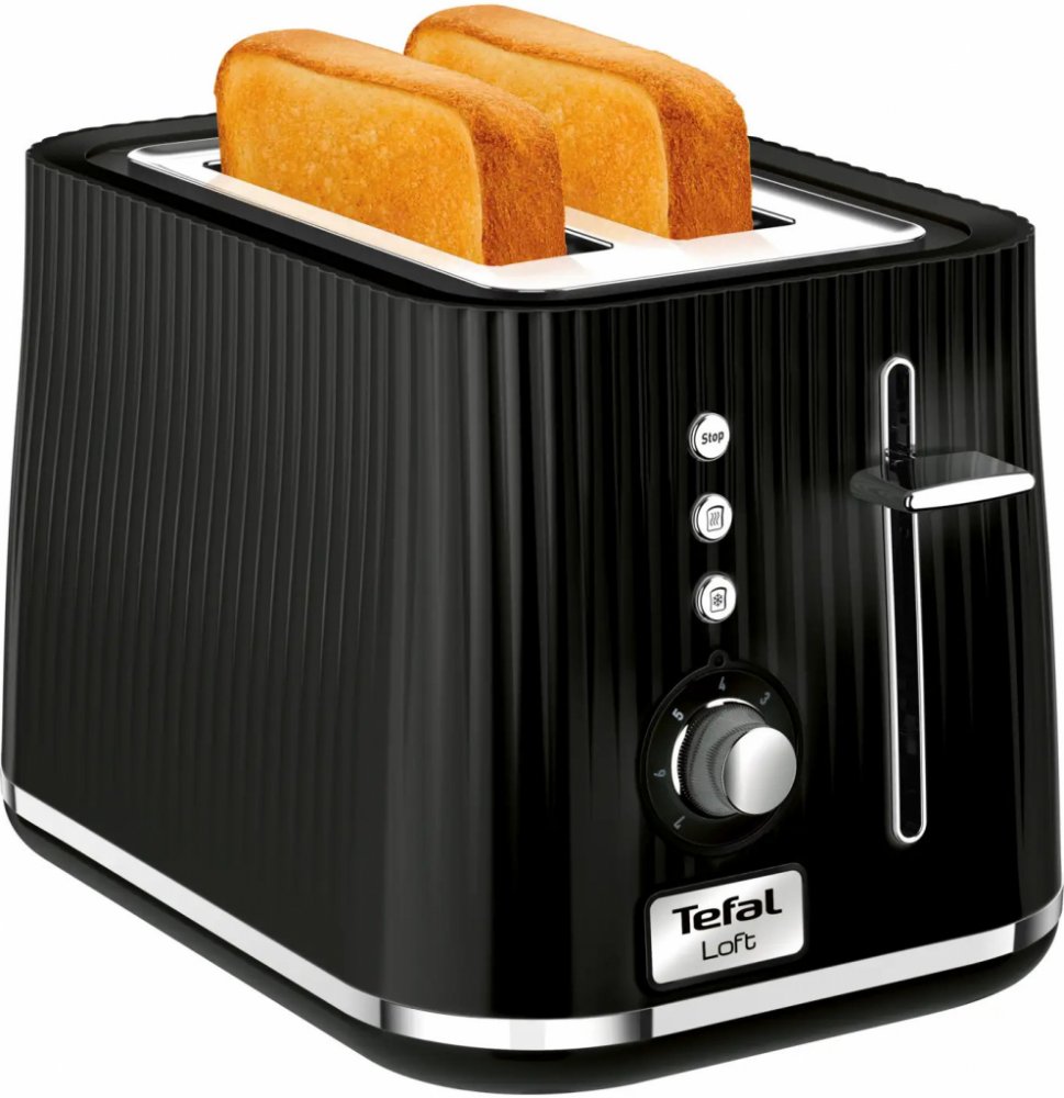 Topinkovače Tefal se honosí krátkou dobou přípravy topinek, zato dlouhou životností. Model Loft Black TT761838 svým elegantním designem sázejícím na jednoduchý retro styl vkusně doplní vaši kuchyňskou linku. Jeho design předstihne jediné – jeho funkce. Topinkovač se totiž pyšní hned 7 stupni intenzity opečení a 3 různými funkcemi, jež jsou doplněny LED indikátory. Přístroj se navíc nezalekne ani širokých krajíců, takže si můžete dopřát, co hrdlo ráčí!