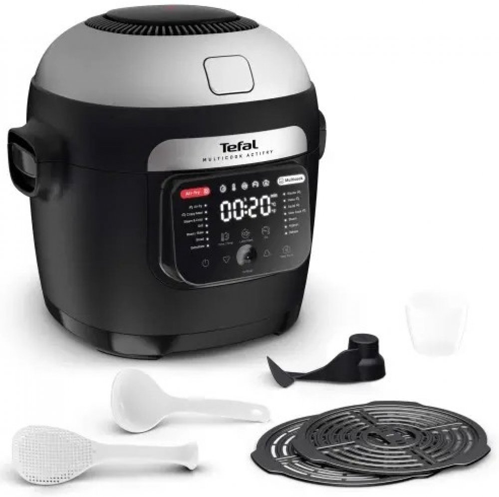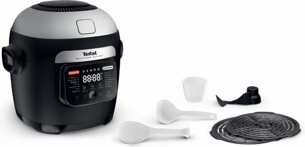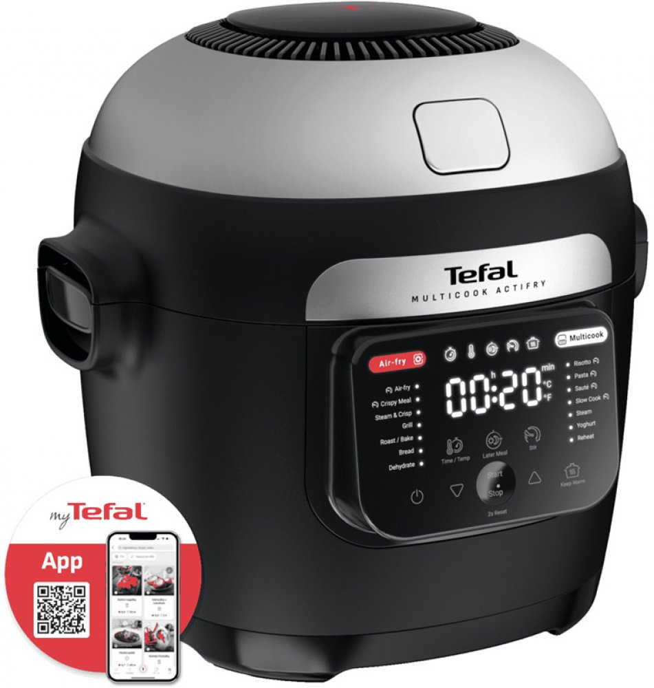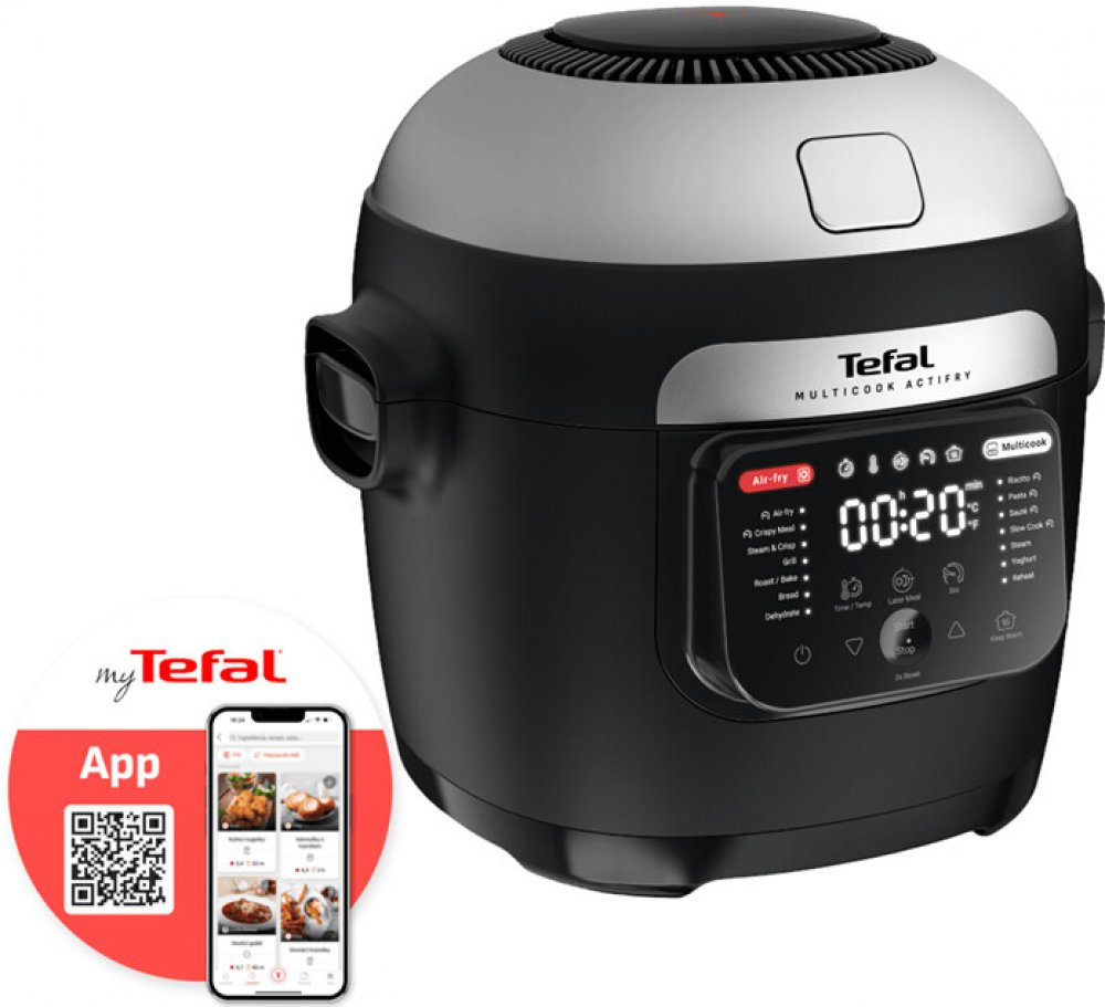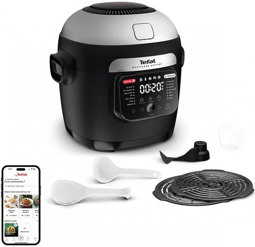 Select brand:ÚvodHlavní infoGalerieTechnické specifikaceReceptyTefal MY741CF0Objevte multifunkční hrnec v kombinaci s horkovzdušnou fritézou, který vám umožní připravit všechny vaše oblíbené křupavé pokrmy a zdravé lahůdky během chviličky. Díky technologii Actifry si užijete rovnoměrně připravené jídlo, které se smaží a míchá současně. S víceúrovňovými podložkami můžete připravit kompletní jídlo, například lososa a quinou, zároveň! Jeho velký objem 6 litrů je ideální pro 6 porcí, takže se skvěle hodí pro každou příležitost – od rychlých večeří po slavnostní menu pro hosty. Díky funkci udržování teploty pokrmy zůstanou teplé, dokud nepřijde čas k jídlu. A s 15letou zárukou opravitelnosti a jednoduchým údržbovým příslušenstvím do myčky budete mít jistotu, že si váš hrnec budete užívat dlouhá léta. Nechte se inspirovat aplikací My Tefal, která vám přináší recepty a služby na míru. V balení najdete vše, co potřebujete – od míchací lopatky po multifunkční podložky, abyste mohli začít vařit okamžitě!Multifunkční...