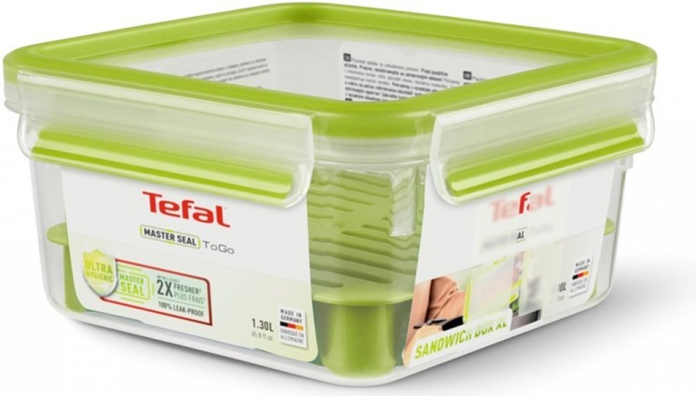 Hlavní přednosti produktu Tefal MASTER SEAL TO GO XL 1,3L N1071710 Dóza s víkem Tefal se hodí k efektivnímu uchování potravin Přispěje k lepší organizaci domácnosti Má vliv na prodloužení čerstvosti jídla Potřebné potraviny budete mít vždy po ruce Praktická čtvercová dóza Plastová dóza disponuje nízkou hmotností a vyniká jednoduchou údržbou Víko je s klipy Nabízená dóza je vhodná do mikrovlnné trouby, myčky a mrazáku Skvěle těsní a zabezpečí spolehlivé uzavření obsahu Materiál neobsahuje BPA Objem je 1,3 l Nabízí rozměry 8,4 × 16,5 × 16,5 cm (vך×h)