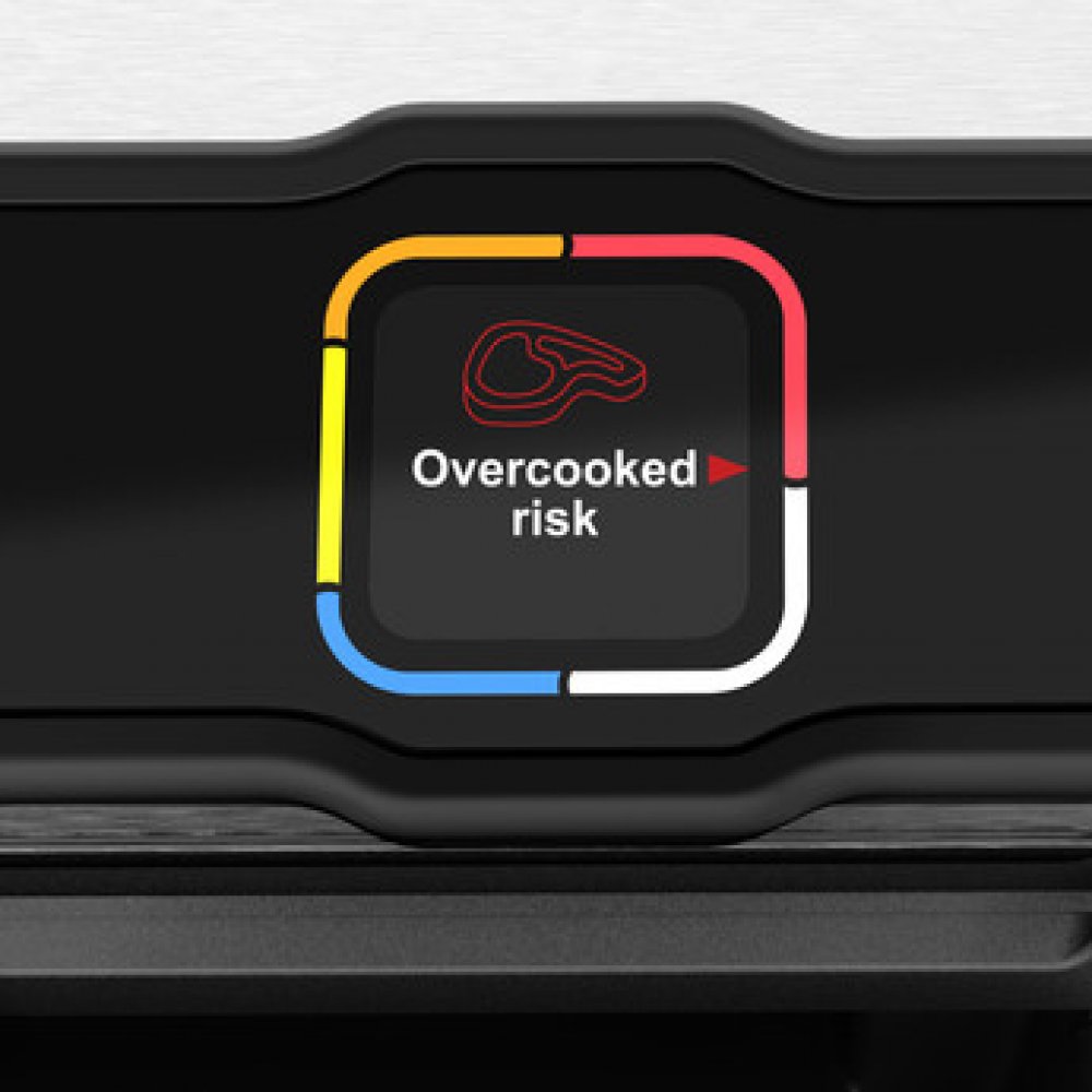 Patentovaný systém OptiGrill automaticky měří tloušťku potraviny a počet kusů a podle toho upraví dobu vaření. Na digitálním LCD vidíte průběh a odpočet do hotova, takže dosáhnete přesného stupně propečení bez odhadů.