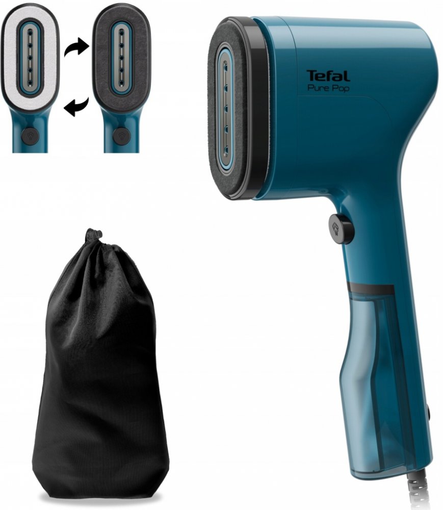 Steamer Tefal Pure POP je skvělým řešením pro žehlení a péči o tkaniny. Toto malé, intuitivní a výkonné zařízení vyhlazuje tkaniny, dezinfikuje párou a čistí od žmolků najednou. Ruční napařovač Pure POP je kombinací vysokého parního výkonu s ultralehkou konstrukcí, což zaručuje snadné žehlení doma i na cestách. Okamžitá doba zahřívání (15 sekund), vysoký výkon zařízení 1300 W a stálý parní ráz 20 g/min. zajistí, že vaše oblečení bude dokonale hladké během několika minut!
