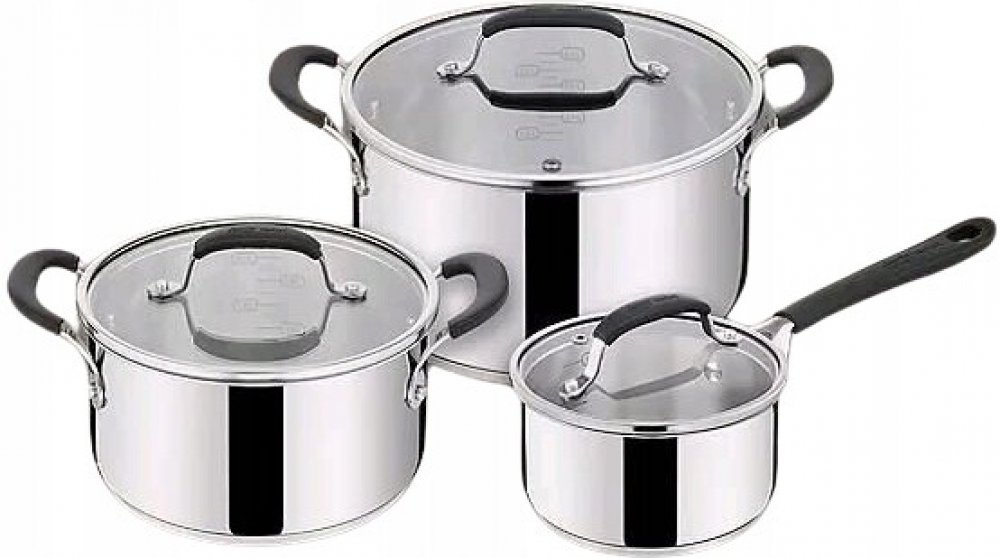 Sada obsahuje 3 hrnce s různými kapacitami, které umožňují přípravu pokrmů ve správném poměru – od omáček až po jednohrncové pokrmy: