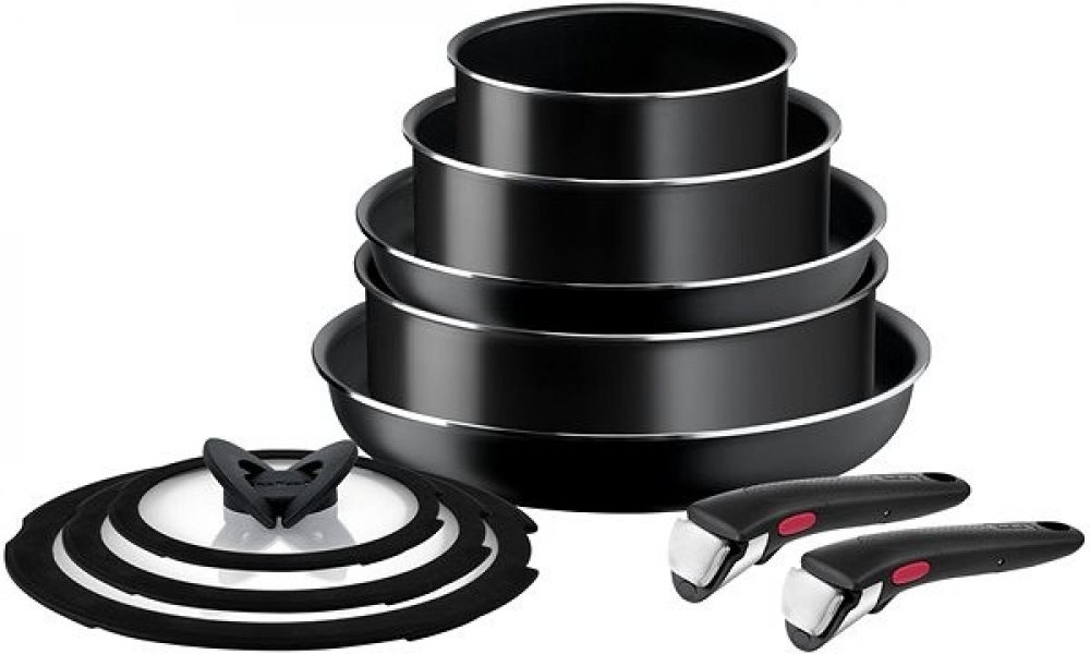 na vaření obsahuje 10 ks nádobí, pánev 24 a 28 cm, rendlíky 16 (1,8 l) a 20 (2,8 l) cm, hluboká pánev 24 cm, skleněné poklice 16, 20, 24 cm, 2 ks odnímatelná rukojeť, vnitřní nepřilnavý povrch Titanium, vnější nepřilnavý povrch, materiál hliník, indikátor teploty Thermo-Signal, kompatibilní typ ohřevu plyn, sklokeramika, elektřina, vhodné do trouby do 250 °C (bez rukojeti a poklic), vhodné do myčky, odolný povrch, dno s funkcí rozptýlení tepla, záruka 10 let na rukojeť, vyrobeno ve F (L1549042)