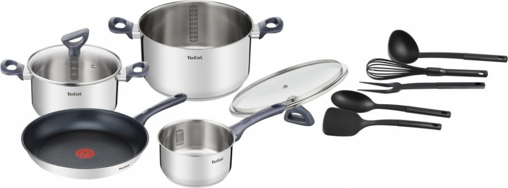 Select brand:ÚvodHlavní infoTechnické specifikaceSada nádobí Tefal Daily Cook 11 ks G713SB45 Kvalitní nádobí je nezbytným základem každé moderní kuchyně. Chcete-li mít přesně takové, pořiďte si sadu Tefal Daily Cook, která obsahuje nejen hrnce ale také vidličku, naběračku, obracečku, metlu a lžíci. Jedním nákupem vyřešíte nezbytný základ pro každodenní vaření.Tefal usilovně pracuje na tom, aby zaručil dokonalé výsledky vaření pokaždé, když vkročíte do kuchyně – zkrátka jeden další důvod, proč si vybrat Tefal!Dokonalé výsledky vařeníNení vyplněn Alternativní text k fotografii!Při výrobě nádobí Tefal byla použita vysoce kvalitní nerezové ocel zajišťující maximální odolnost, trvanlivost a minimální riziko poškození v průběhu času. Tefal kvalitu nerezového materiálu garantuje poskytnutím 10leté záruky.Prvotřídní nerezová ocelKompatibilní se všemi typy sporáků, včetně indukce (plynový, elektrický, keramický, indukční). Ideální pro mnoho různých receptůPánev Daily Cook s vysoce odolným...