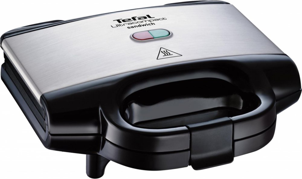 Sendvičovač TEFAL má 2 světelné indikátory: červený (zapnuto / vypnuto) a zelený (zhasne, když má přístroj správnou teplotu).
