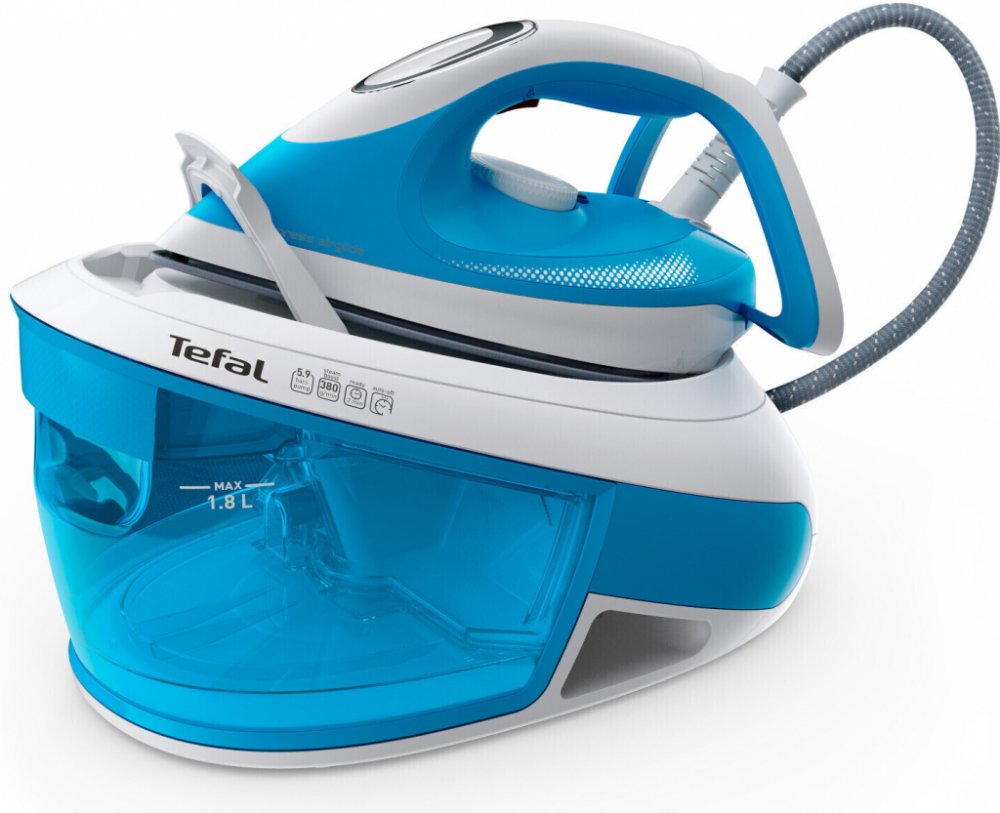 Tefal SV 8002 Express Airglide - Parní žehlicí staniceParní žehlicí stanice Express Airglide poskytuje rychlé a snadné výsledky a trvale vysoký výkon. Je vybavena vylepšeným systémem údržby a nabízí vynikající parní výkon vhodný pro jakýkoli typ tkaniny. Odnímatelný sběrač vodního kamene zajišťuje snadnou údržbu, delší životnost výrobku a maximální účinnost. Variabilní výstup páry 35 - 120 g/min a tlak čerpadla 5,9 barů zkracují dobu žehlení, zatímco koncentrovaný výkon parního rázu 380 g/min vyhladí i ty nejodolnější záhyby. Parní žehlicí stanice nabízí praktické funkce pro vynikající výsledky žehlení a je vybavena manuálním termostatem pro přesné nastavení. Žehlicí plocha Durilium AirGlide se vyznačuje vynikající kluzností, vysokou odolností a maximálně snadným použitím. Technologie Calc Clear zajišťuje snadnou údržbu a dlouhotrvající parní výkon. Parní žehlicí stanice Tefal SV8002 Express AirglideDOKONALÉ VÝSLEDKY: Výkonná parní žehlicí stanice se silným parním rázem 380 g/min, kontinuálním uvolňováním páry 120 g/min a tlakem páry 5,9 bar pro všechny požadavky na péči o textilieŽELEZNÁ DESKA PRVNÍ TŘÍDY: Robustní a odolná deska Durilium AirGlide s mimořádně vysokou kluzností zajišťuje mimořádný komfort a maximální distribuci páry s naprostou účinnostíDLOUHODOBÝ VÝKON: Technologie Calc Clear udržuje spotřebič v bezvadném stavu a zajišťuje dlouhotrvající parní výkon a údržbu bez stresuPÉČE O TEXTIL S VYSOKOU PŘESNOSTÍ: Manuální termostat zajišťuje maximální kontrolu a přesné nastavení Výkonná pára: tlak páry 5,9 bar, 120 g/min. kont. Výstup páry pro efektivní výsledky a výkon 380 g/min. Parní ráz, který si poradí i s odolnými záhybyFunkce Eco: až 20% úspora energie s jediným nastavením na základně; automatické vypnutí: po 8 minutách bez použitíVšestrannost: Snadné vertikální napařování pro jemné prádlo nebo obzvláště velké oděvy. Ideální pro odstraňování záhybů z obleků a jiných zavěšených oděvůRychlé nahřátí: Připraven k použití za pouhé 2 minuty a vybaven dlouhým 1,7metrovým napájecím kabelem; vyjímatelná průhledná XXL nádržka na vodu (1,8 litru)Snadná a bezpečná přeprava: Díky uzamykacímu systému se spotřebič snadno přepravuje a skladuje