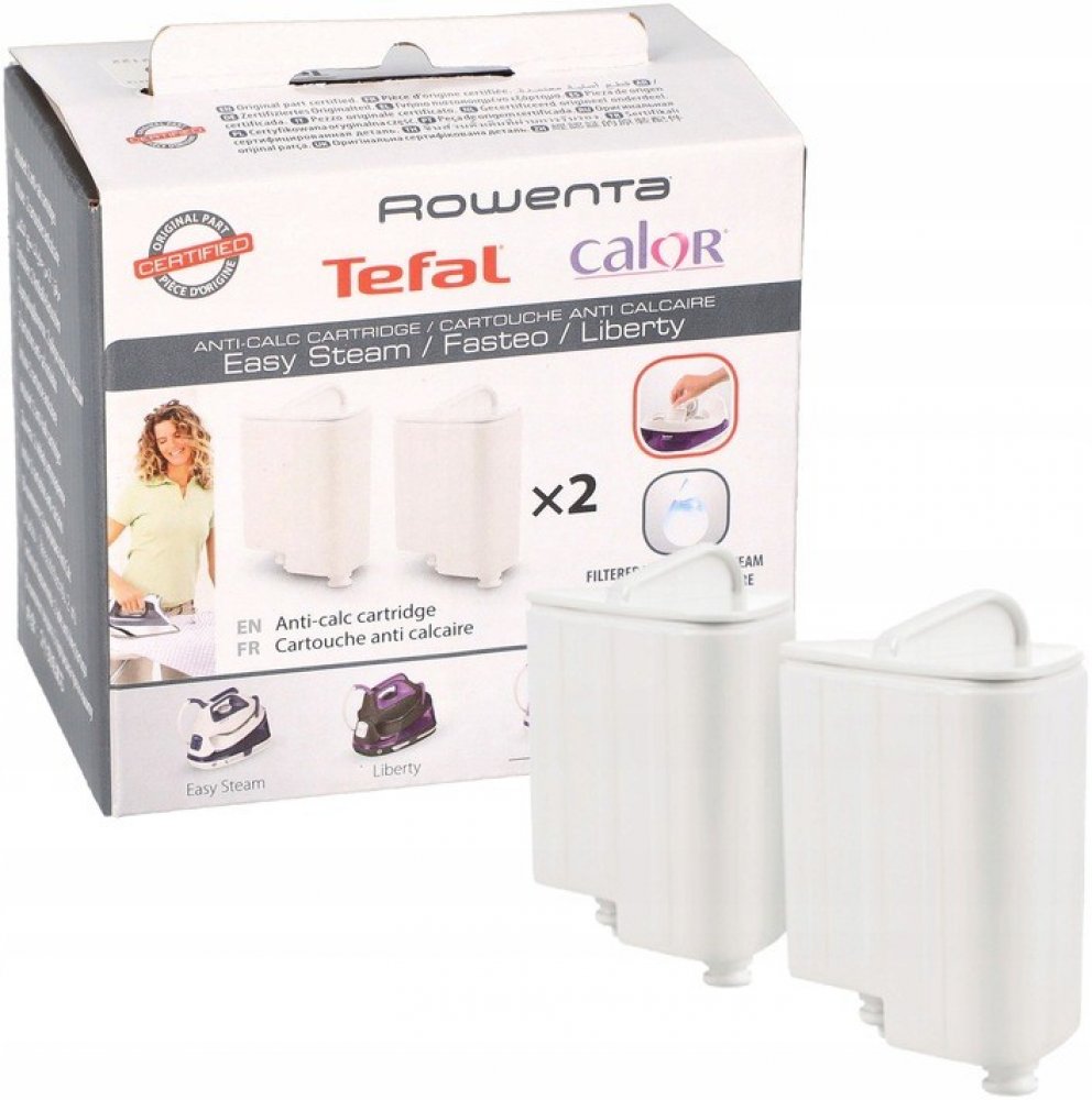 Udržujte svou žehličku stále jako novou. O dlouhodobě bezchybný a vysoký výkon se stará odvápňovací systém, jenž zadržuje vodní kámen, aby se nešířil v interiéru spotřebiče a nezpůsoboval jeho oslabování. Aby však tento systém správně fungoval, je třeba pravidelně vyměňovat odvápňovací kazety. Společnost Tefal vytvořila praktickou sadu dvou odvápňovacích kazet, které jsou určeny pro modely žehliček Tefal SV70xx.