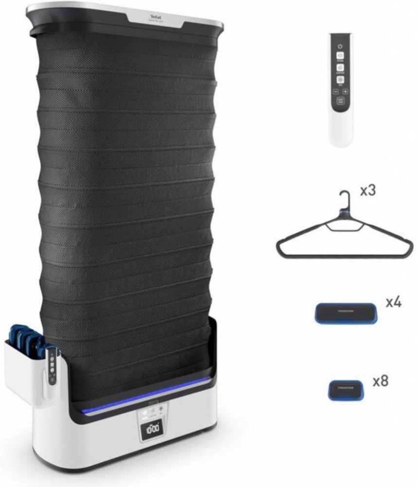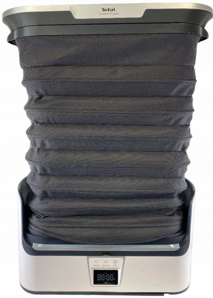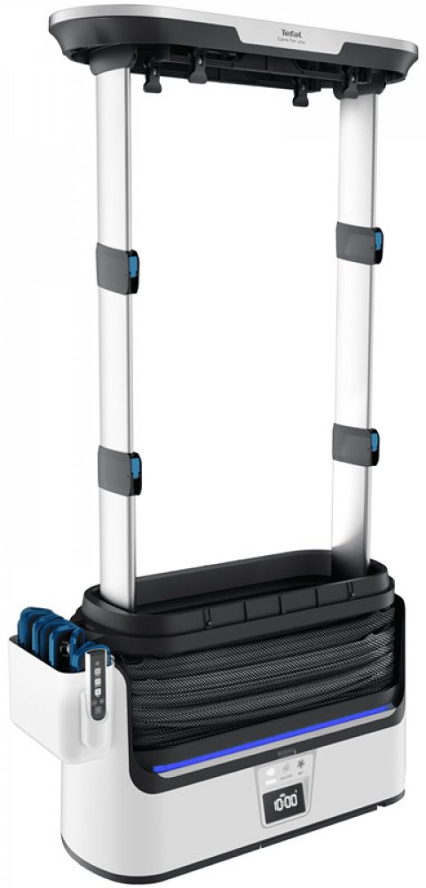 Automatický napařovač oděvů. Vyhlazuje záhyby / dezinfikuje / eliminuje pachy. Výsledek za 10–30 min. Odstraňuje 99,99 % virů, bakterií a choroboplodných zárodků. Pro choulostivé oděvy. Vyjímatelná nádržka na vodu. Kontrolka prázdné nádržky / připravenosti páry. Funkce auto off. Prostor pro uložení kabelu. Pojezdová kolečka.
