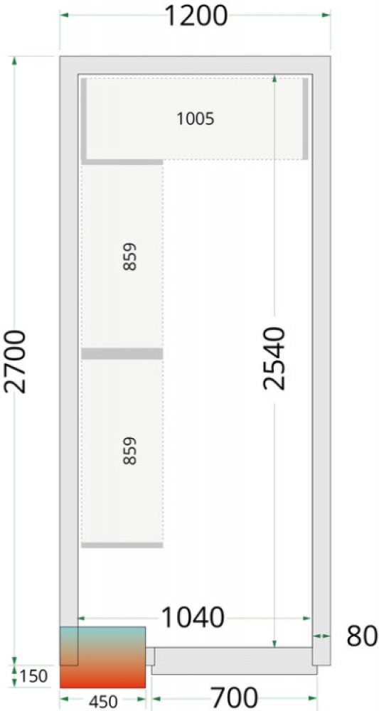 Stavebnicový mrazicí box 120x270x220 s jednoduchou a rychlou montáží se zámkovým systémem spojování. Box je vybaven polyuretanovou izolací 120 mm zajišťující nízkou spotřebu energie, nerezovou podlahou a umožňuje snadný přístup k produktům. Box je bez chladicí jednotky.