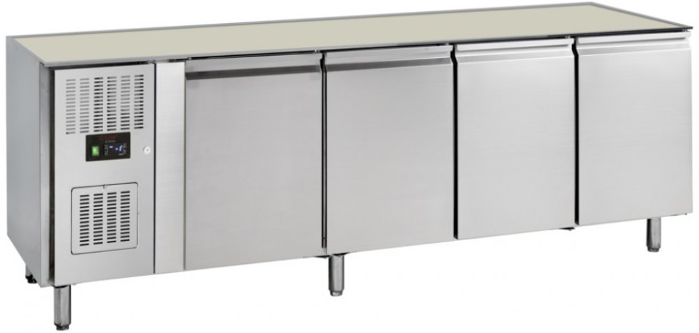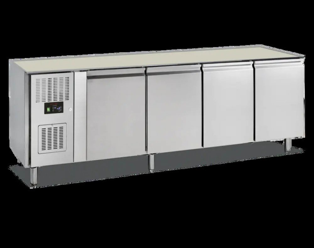 Mrazicí stůl bez desky s agregátem vlevo.