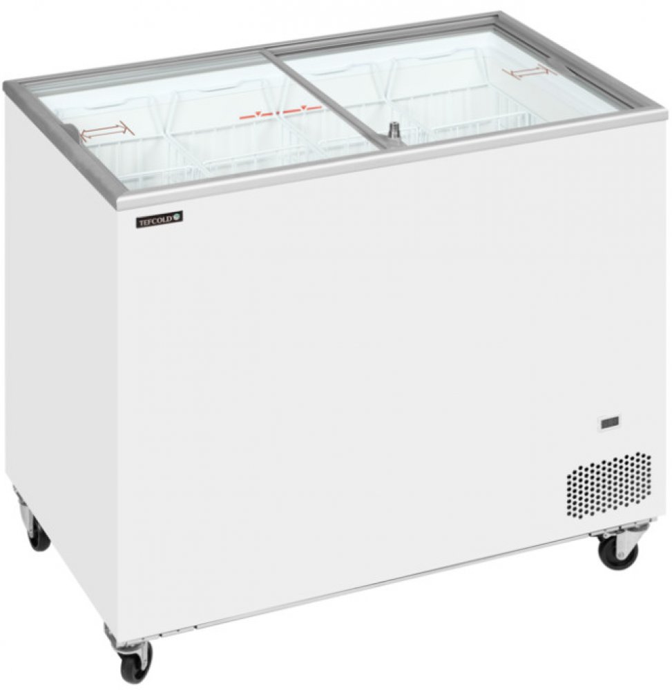 - Perfektní přehled: Dvě rovná posuvná víka poskytují zákazníkům skvělý výhled na nabízené zboží a usnadňují výběr.