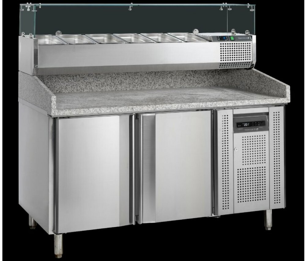 Chladicí stůl TEFCOLD PT 1200 představuje spolehlivé řešení pro každou pizzerii, fastfood nebo gastro provoz, kde je kladen důraz na hygienu, praktičnost a kapacitu. Model je vyroben z odolné nerezové oceli SS304 s kvalitní žulovou pracovní deskou, která zůstává chladná a je ideální pro zpracování těsta.