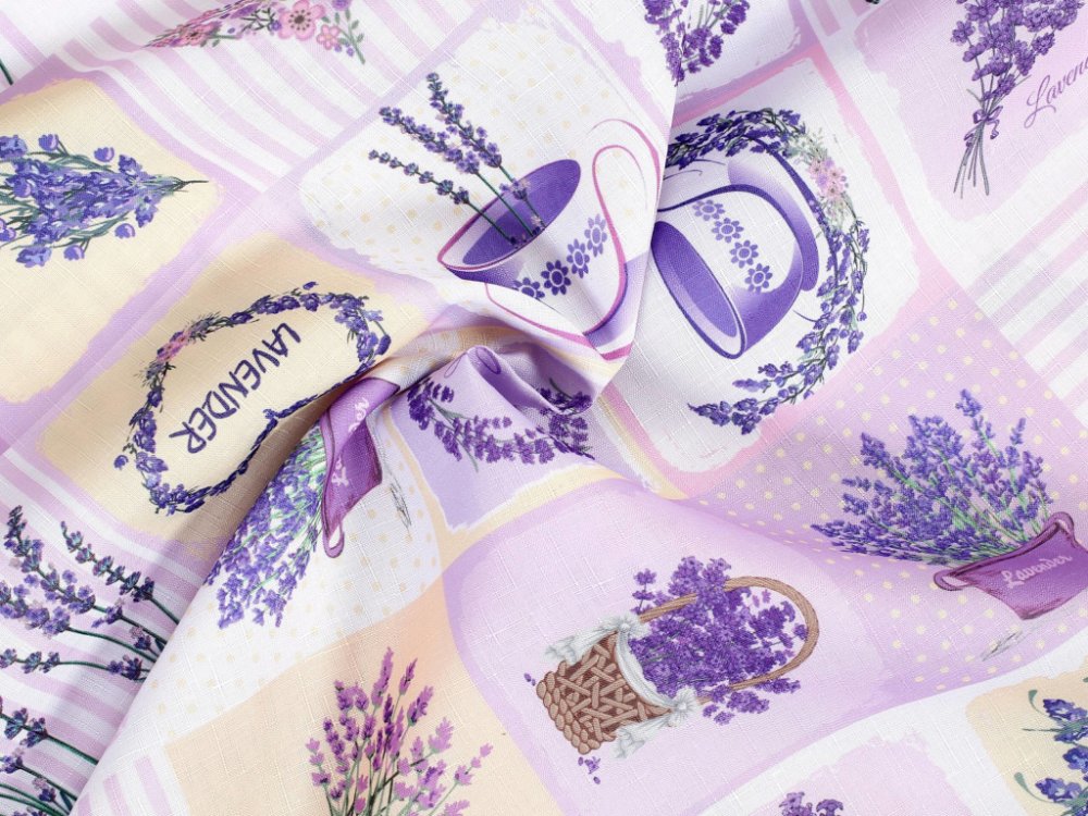 Kromě metrážové látky nabízíme také šité produkty z této levandulové dekorační látky.