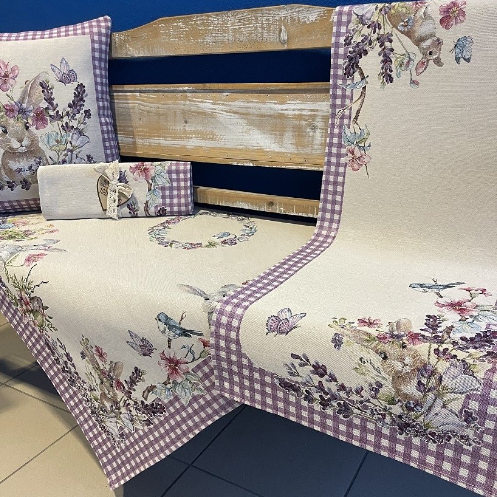 Vysoce kvalitní gobelínový ubrus se zajíčkem s květinami s károvaným lemováním. Ubrusy jsou ušity z velmi kvalitního materiálu, který zaručuje velmi dlouhou životnost.