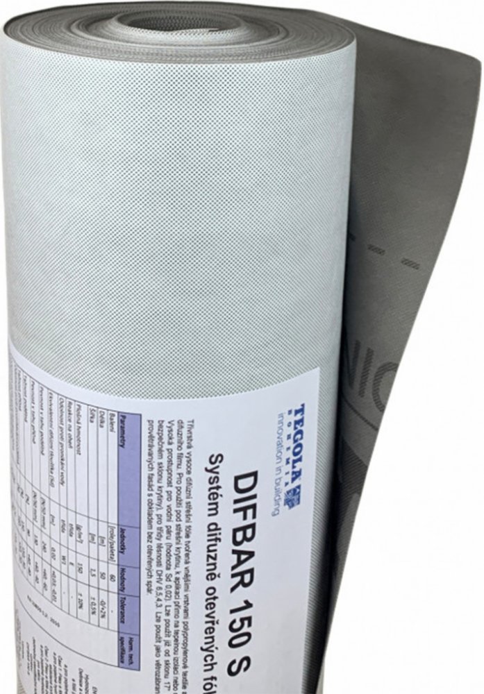 Podstřešní folie Tegola Difbar je třívrstvá kontaktní difúzně otevřená membrána tvořena dvěma vrstvami polypropylénové textilie a jednou vrstvou voděodolné paropropustné PP membrány. Základní funkcí paropropustné fólie je zabránění odkapu kondenzátu ze spodní strany střešní krytiny do tepelné izolace a tím ochrana dřevěné části krovu a tepelné izolace. Rovněž zabraňuje pronikání vody, sněhu a neč...