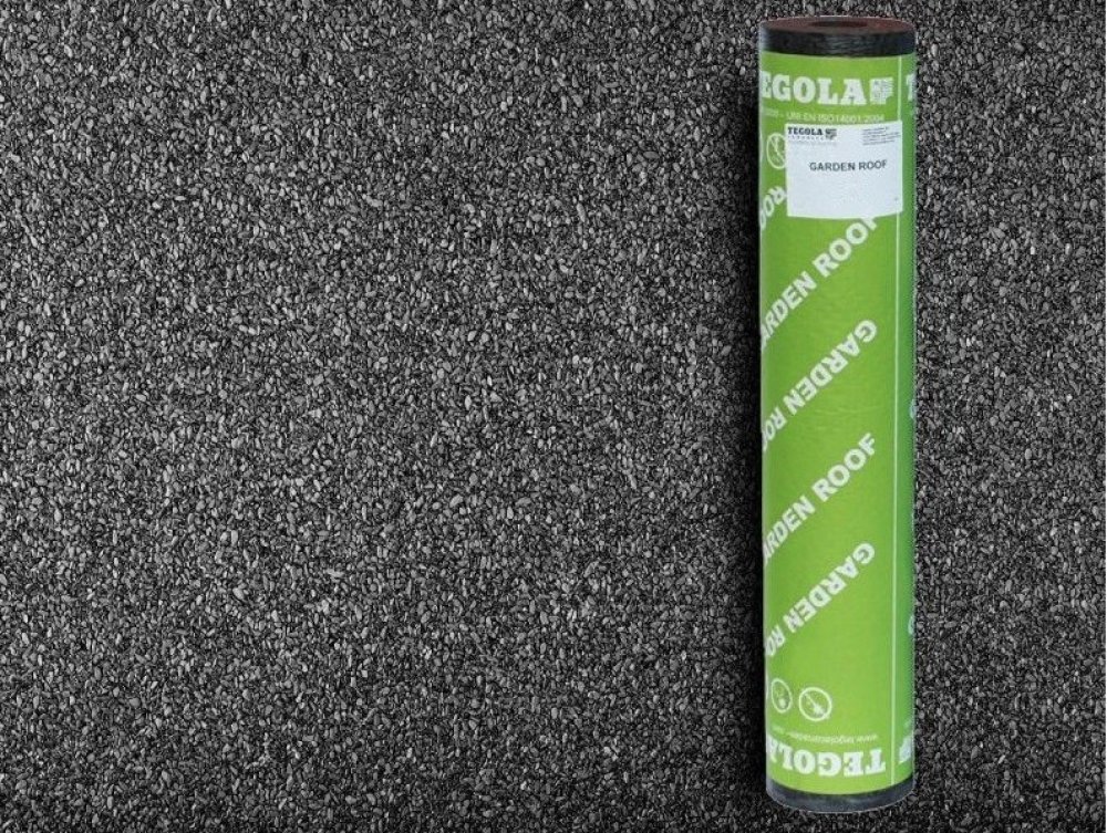 TEGOLA Garden Roof obsahuje skelnou nosnou vložku a je pokrytý jemnozrnným posypem. Tento modifikovaný asfaltový pás je zároveň i hydroizolační. Pás má po celé ploše samolepící vrstvu.