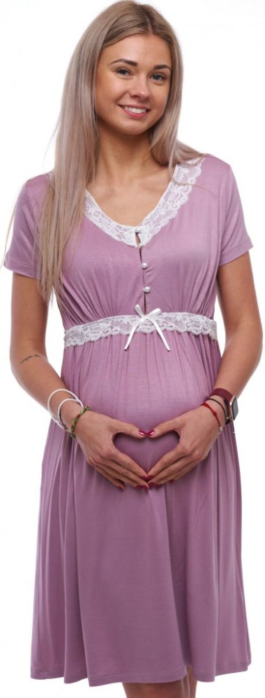 Těhotenská a kojicí košilka z viskózy s bílou krajkou lila 1D1632 fialová